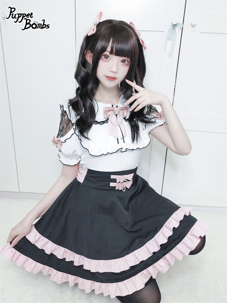 【Puppet Bombs】Q276 ショルダーレース切り替えトップス【30%OFF】 [Q276]