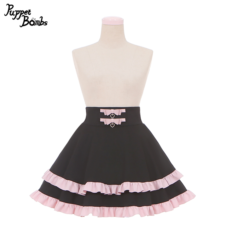 【Puppet Bombs】Q277 ダブルリボンベルトデザインフレアスカート【30%OFF】 [Q277]