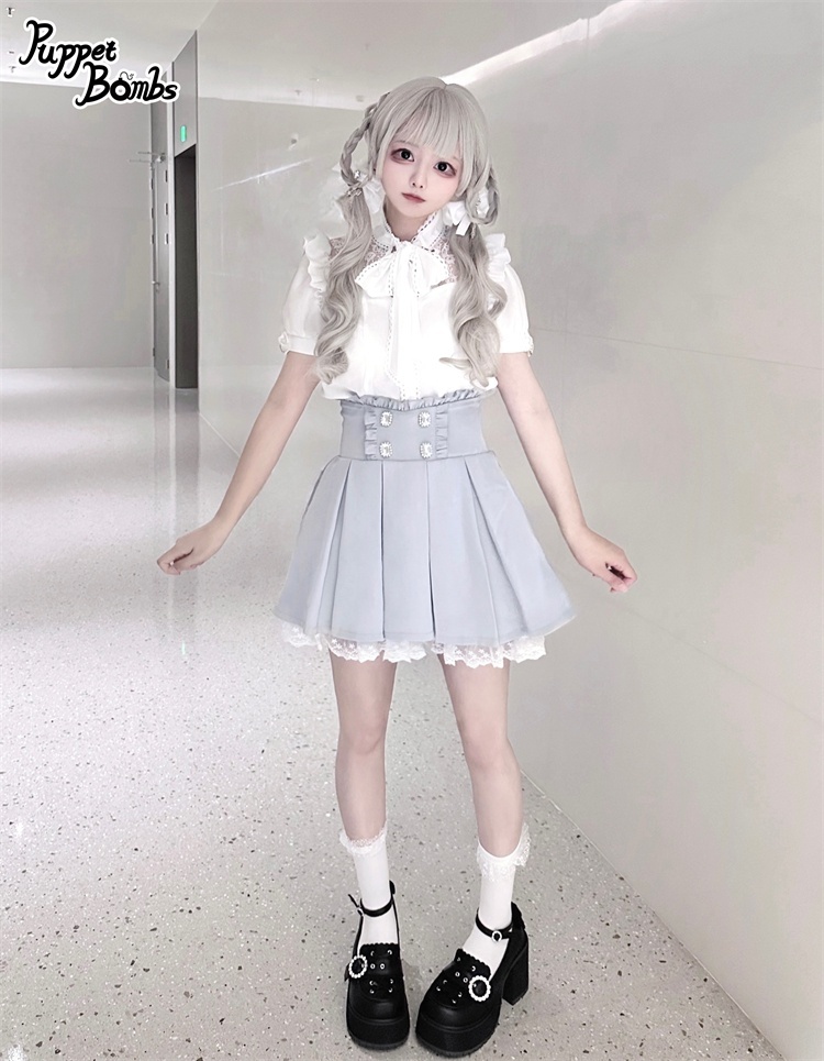 【Puppet Bombs】Q154ビジューフリルボックスプリーツスカート【30%OFF】 [Q154]