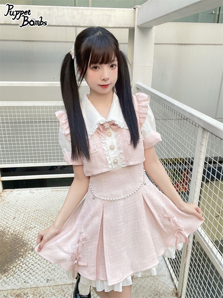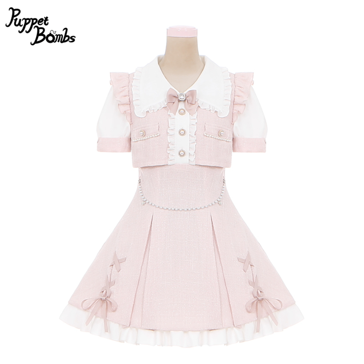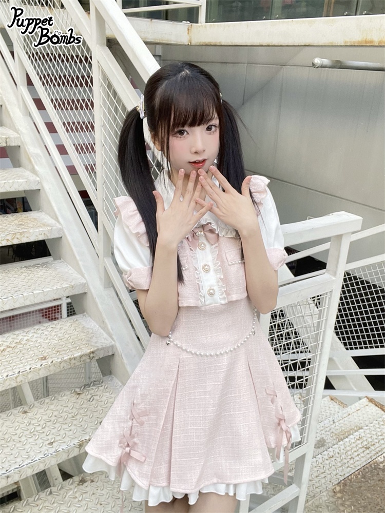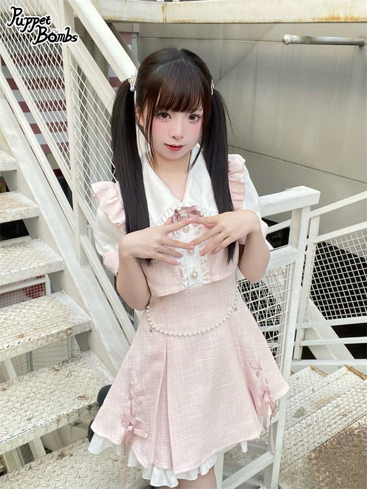 【Puppet Bombs】【Last one】Q168レイヤード風パールチェーン付きワンピース【30%OFF】