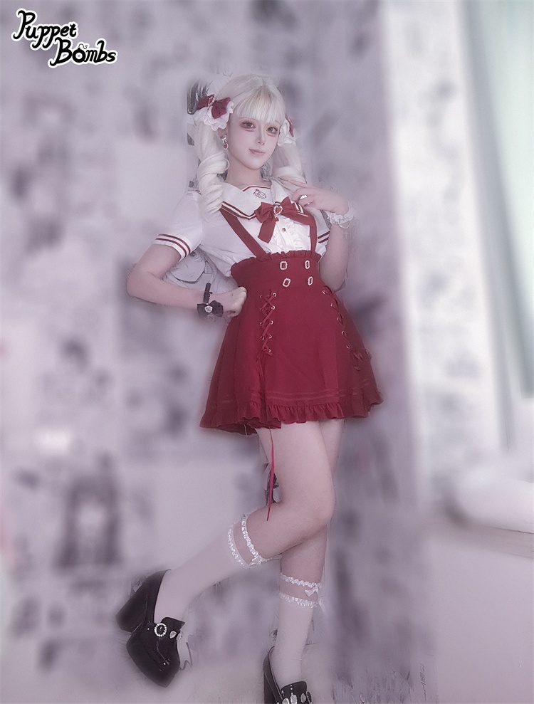 【Puppet Bombs】Q165 ビジューボタンレースアップサス付きスカート【30%OFF】