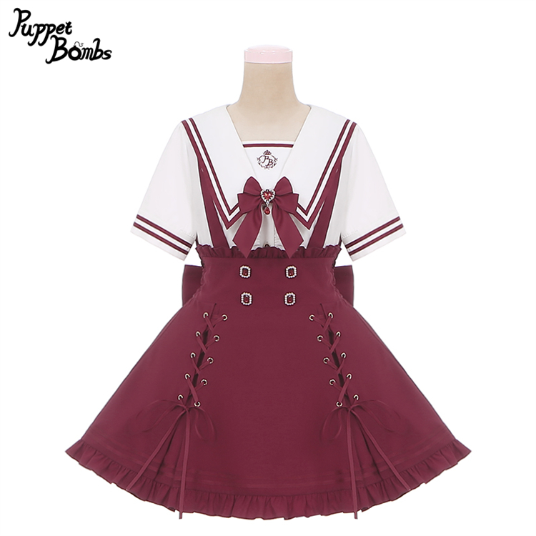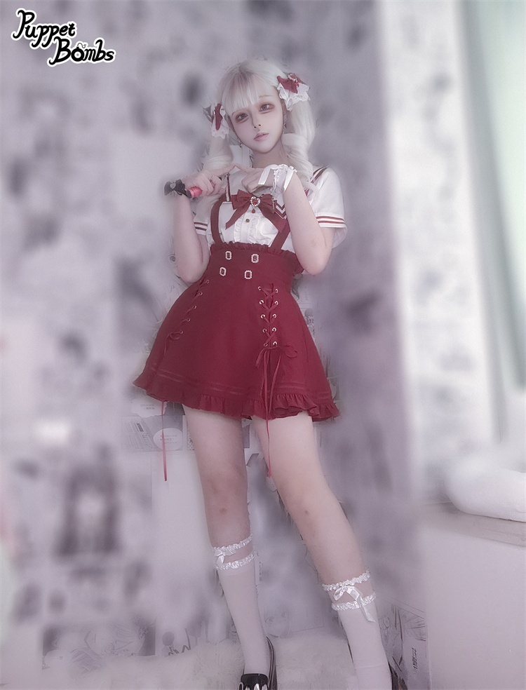 【Puppet Bombs】Q165 ビジューボタンレースアップサス付きスカート【30%OFF】 [Q165]