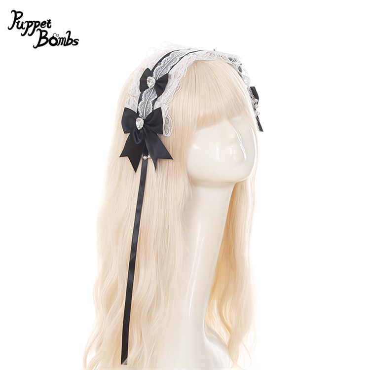 ハートのビジュー付き2連リボンのヘッドドレス。