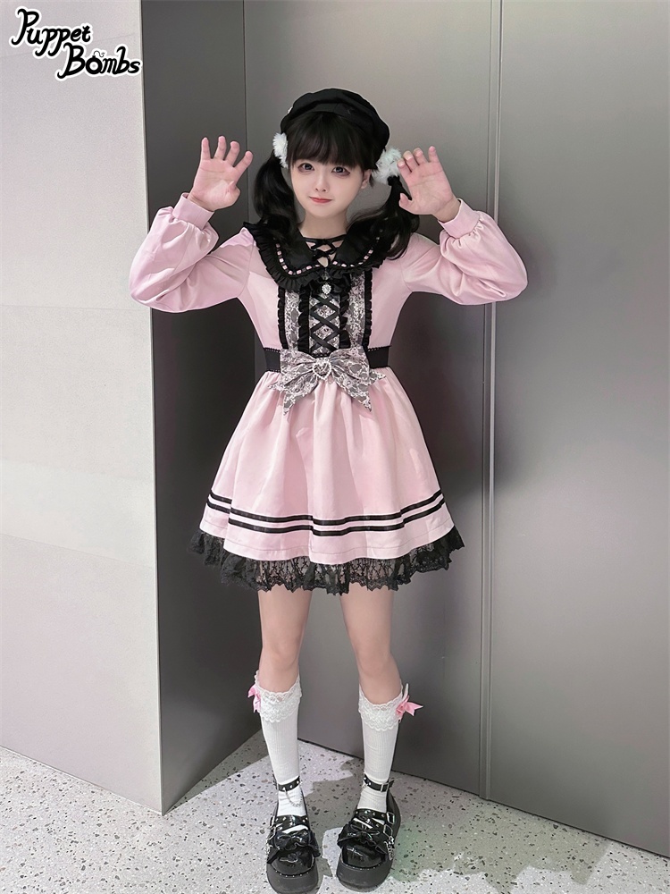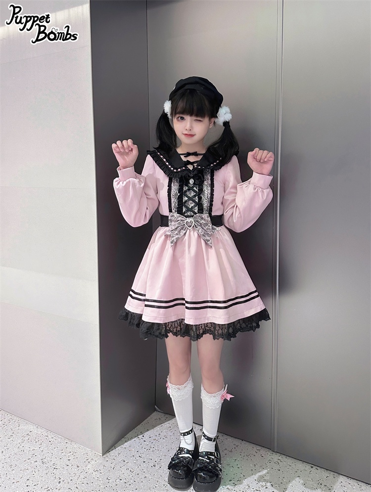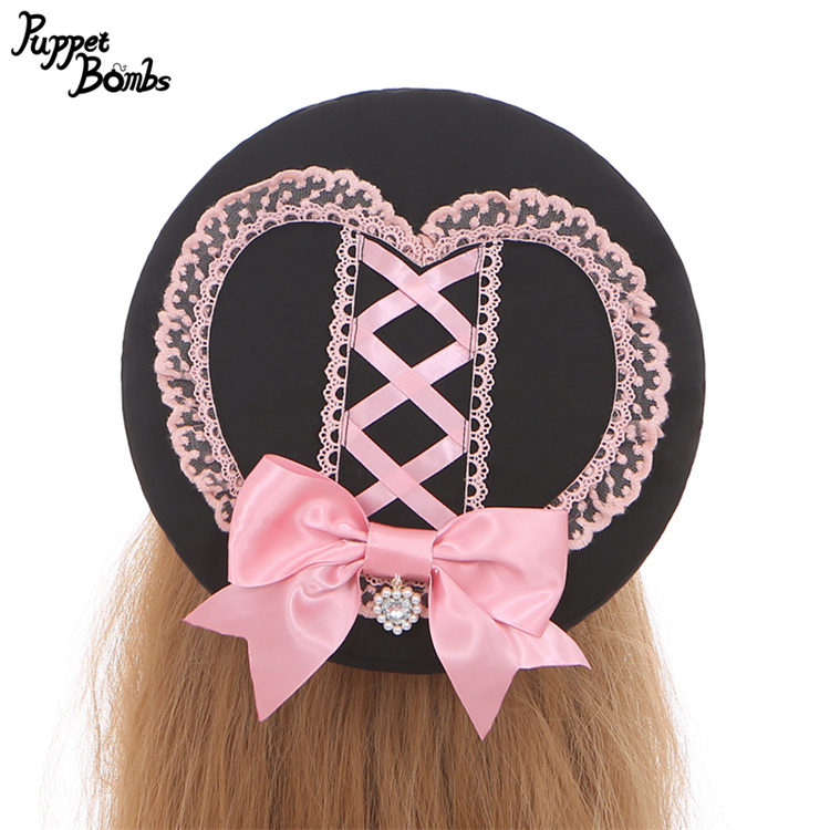 【Puppet Bombs】QS42 ハートレースアップリボンベレー帽【30%OFF】