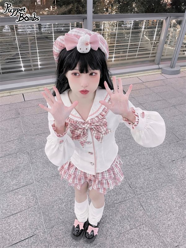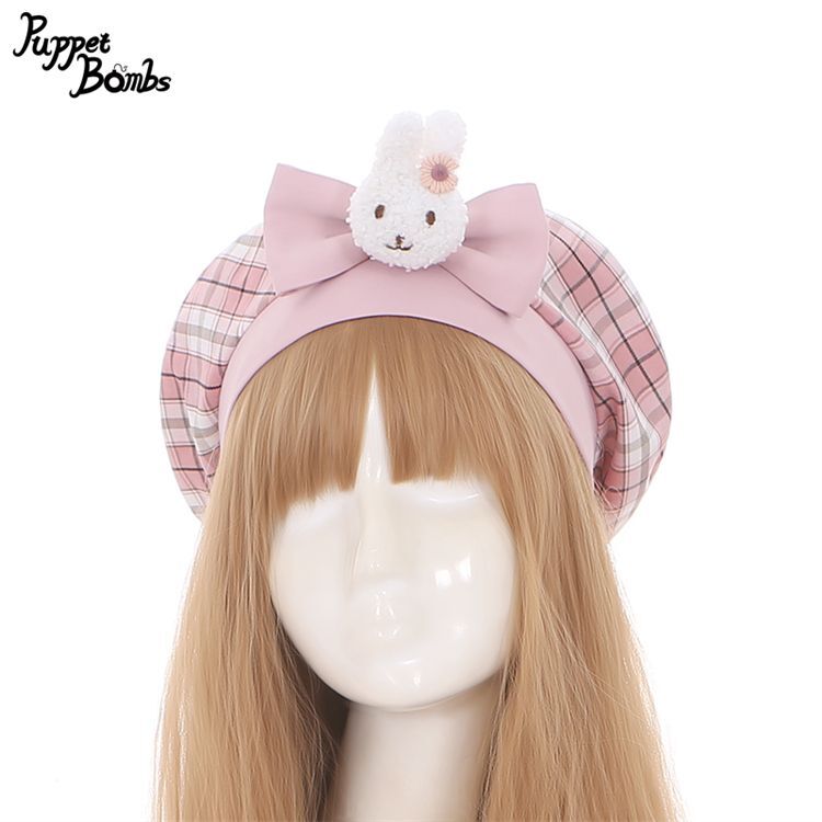 【Last one】【Puppet Bombs】QS22 うさぎモチーフ付きチェックベレー帽【30%OFF】 [QS22]