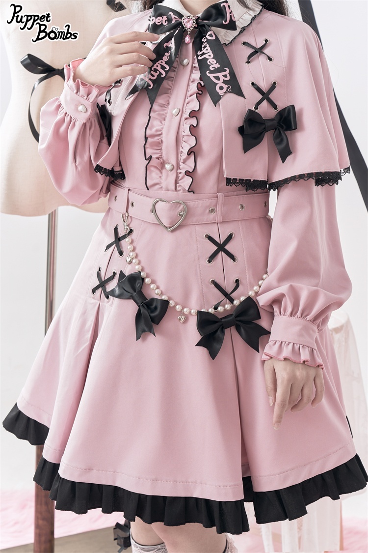 【Puppet Bombs】Q84 ケープ付きリボンワンピース [Q84]
