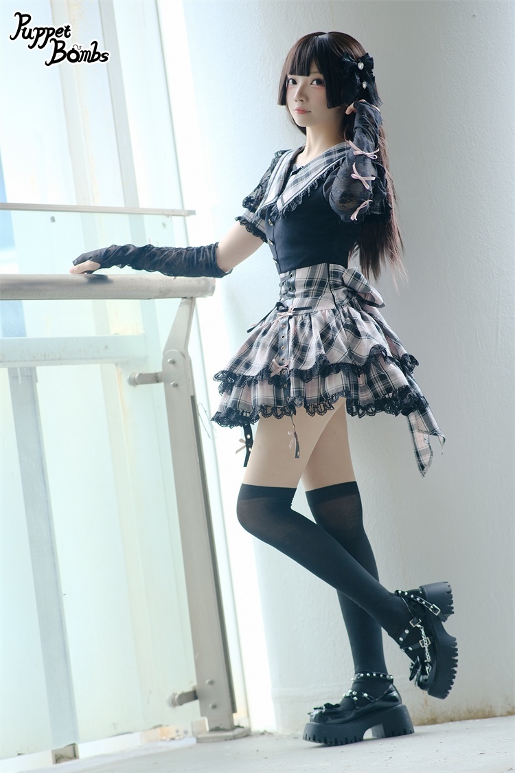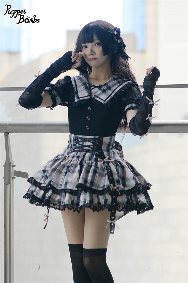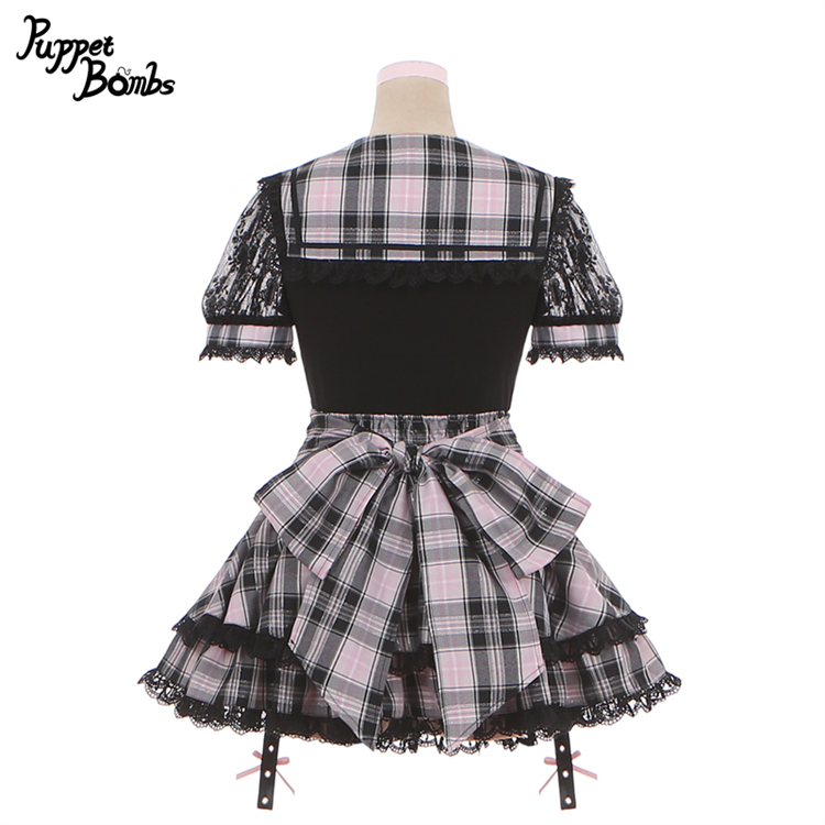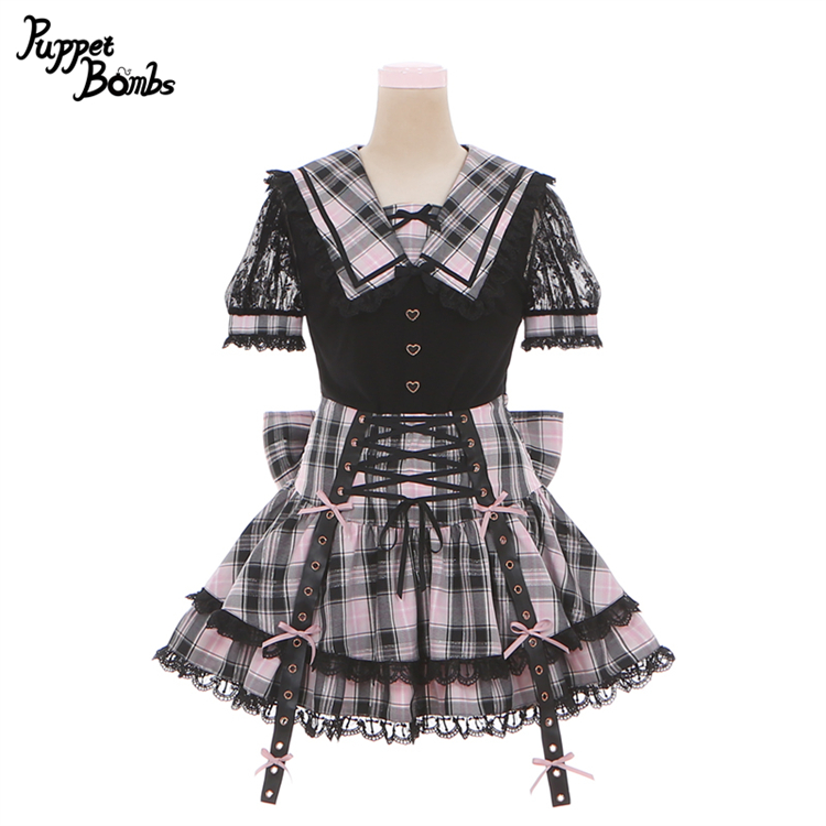 【Last one】【Puppet Bombs】Q158 チェック切り替えセーラーベルトデザインワンピース【30%OFF】 [Q158]