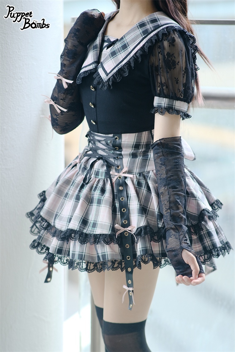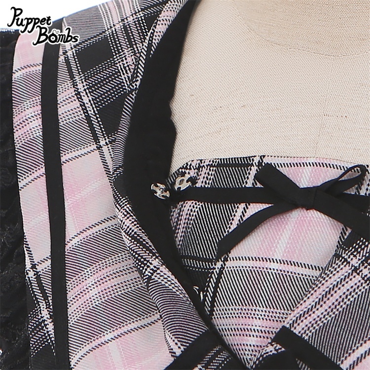 【Last one】【Puppet Bombs】Q158 チェック切り替えセーラーベルトデザインワンピース【30%OFF】