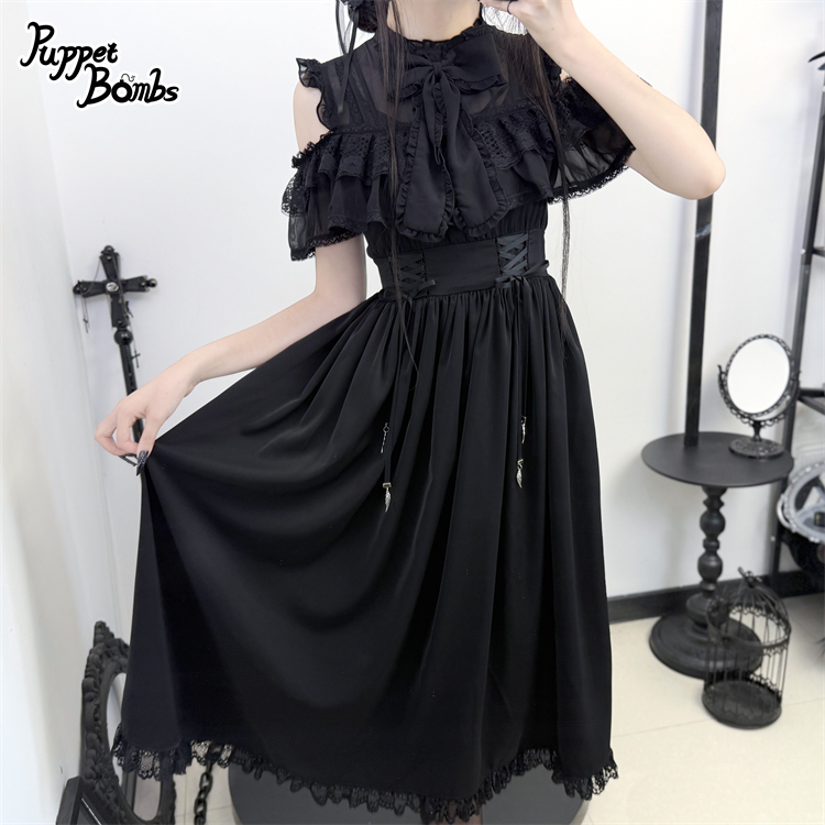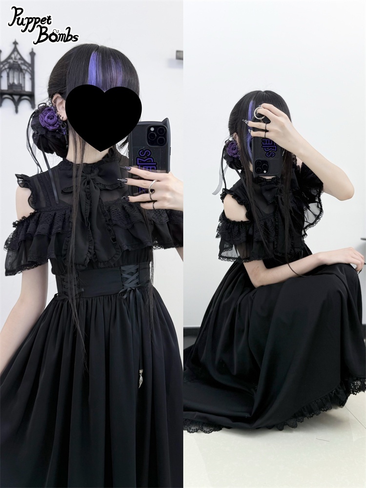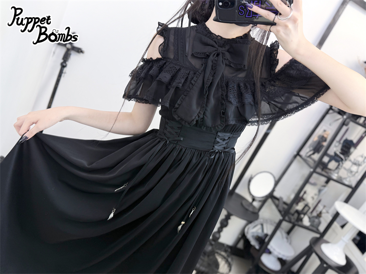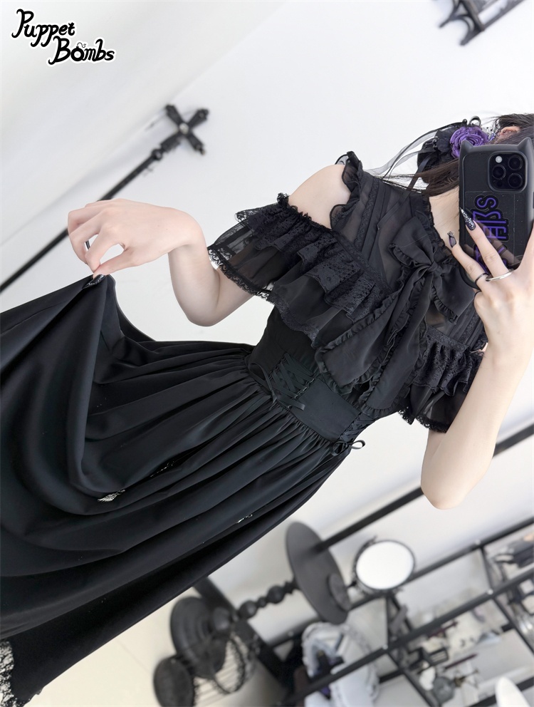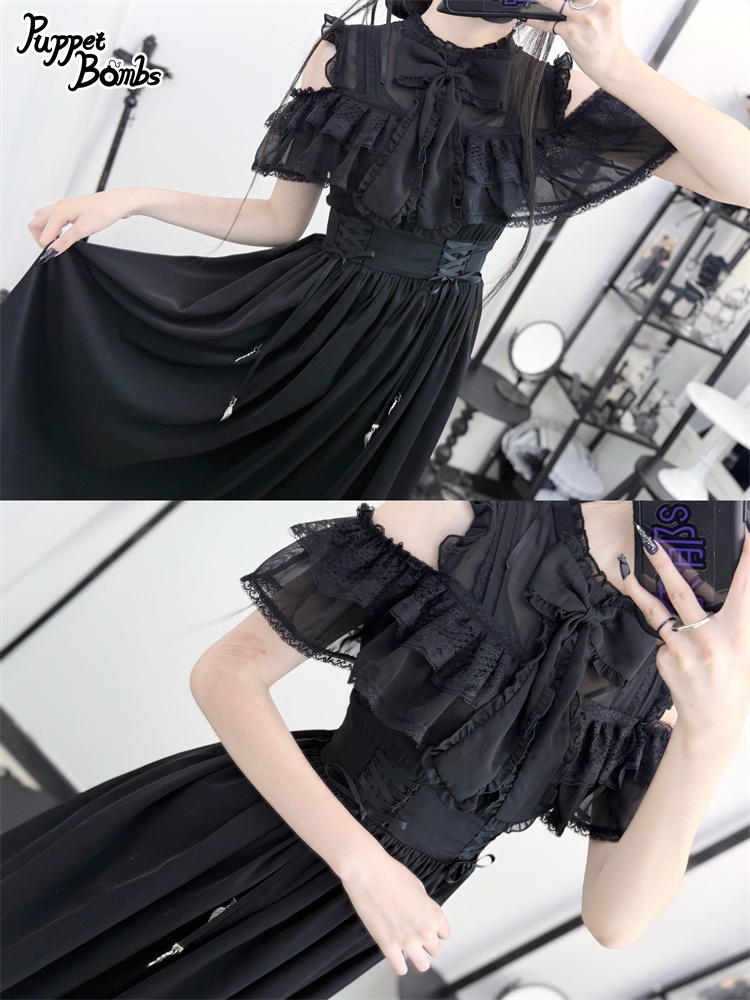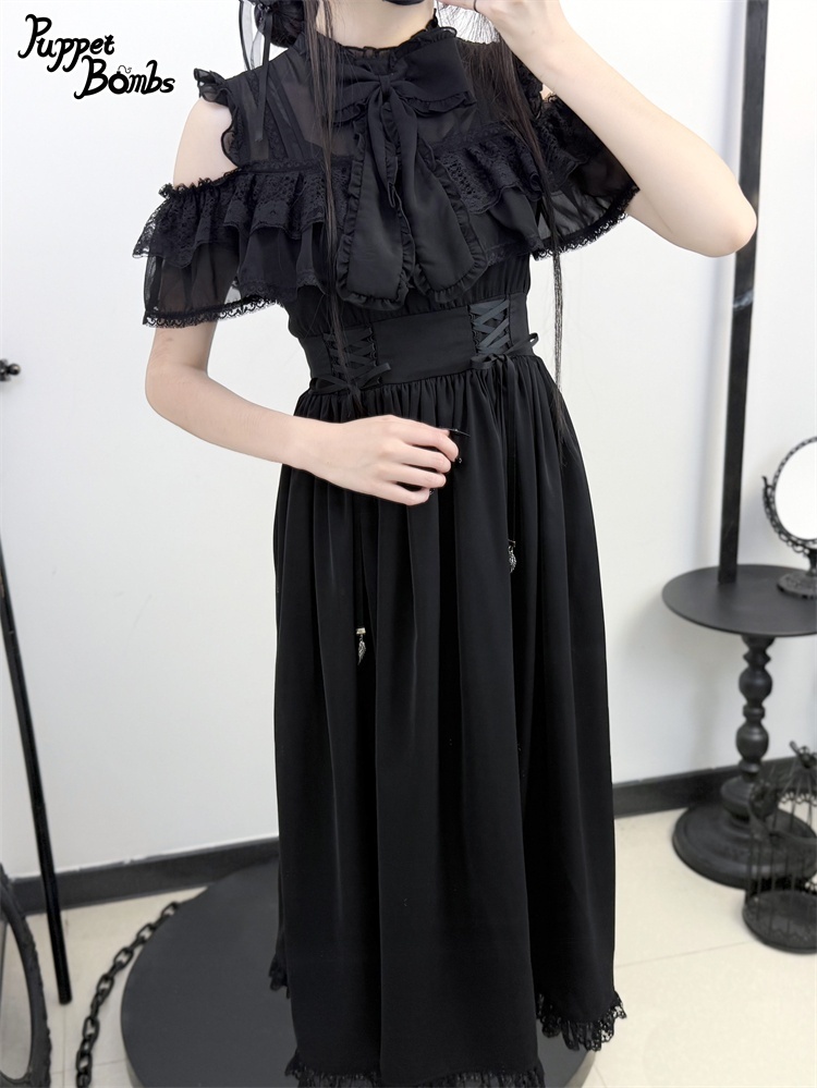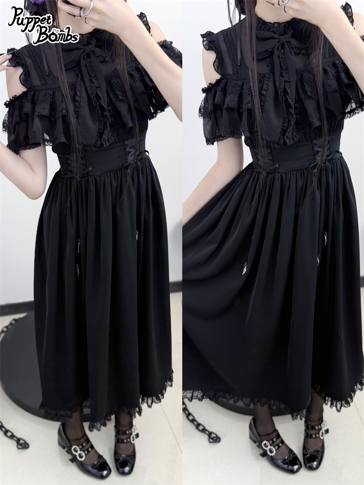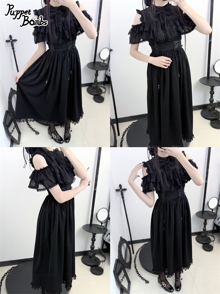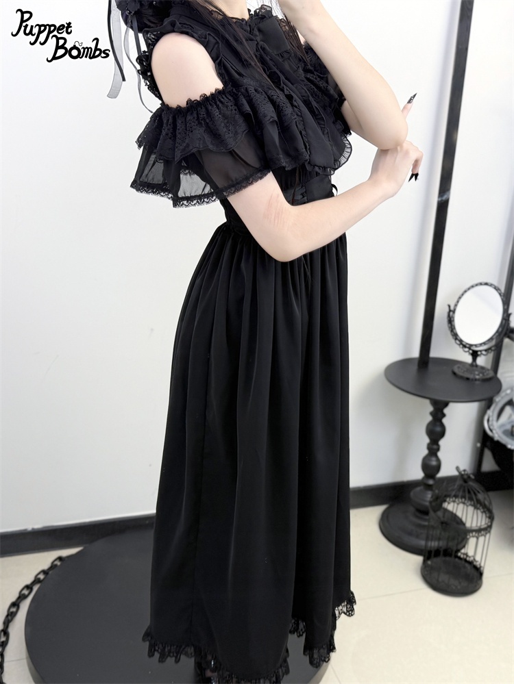【Puppet Bombs】Q437 オープンショルダーロングワンピース [Q437]