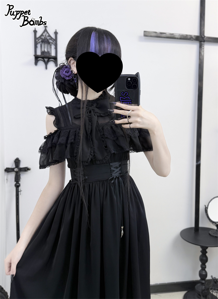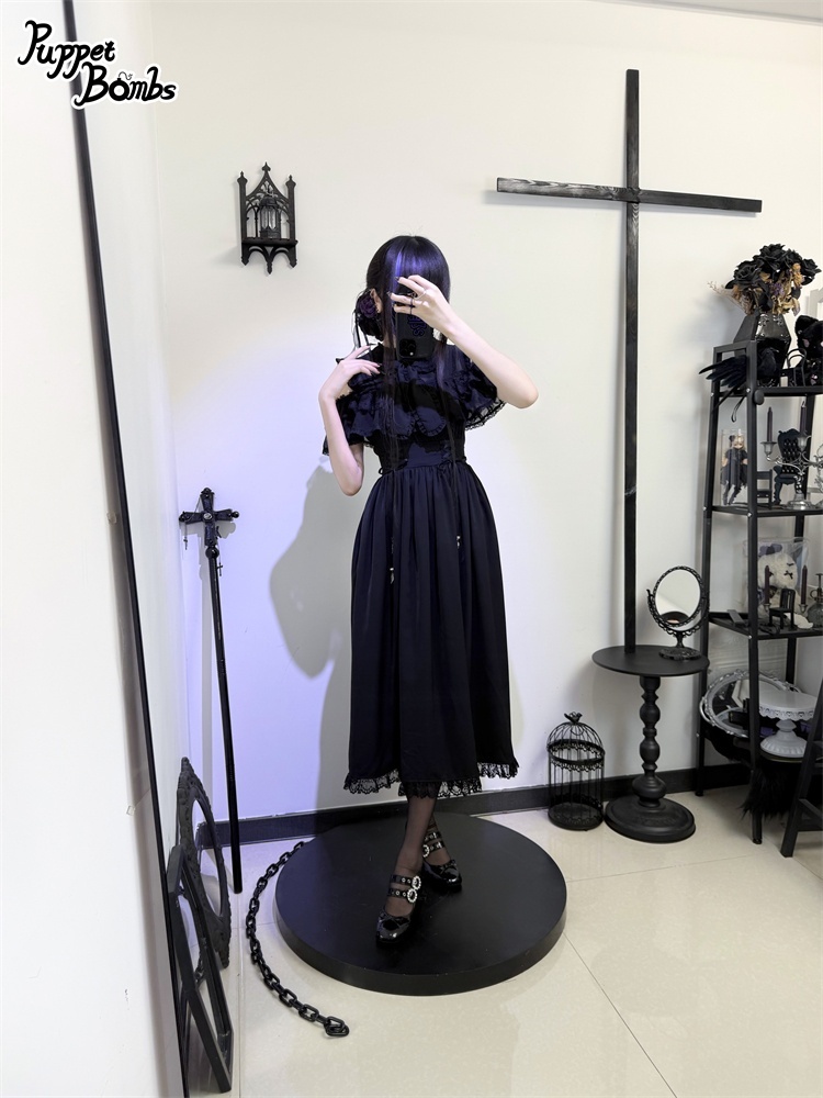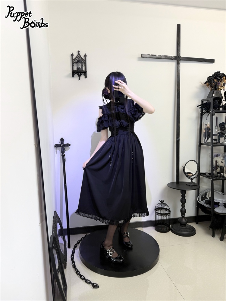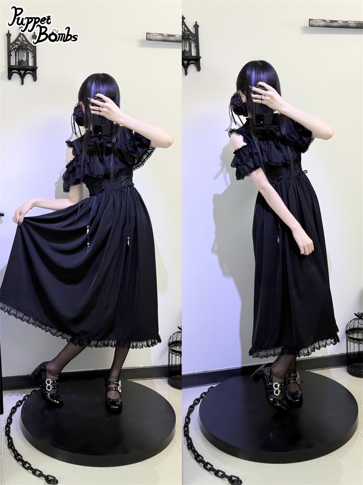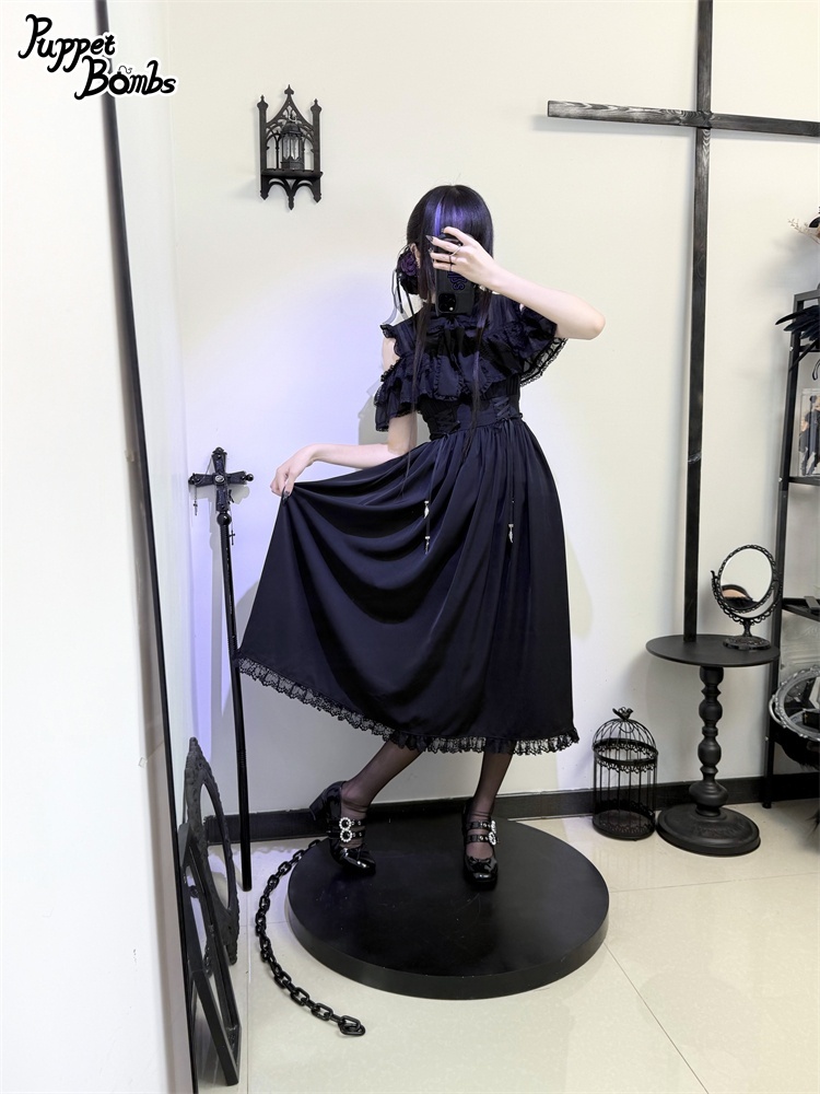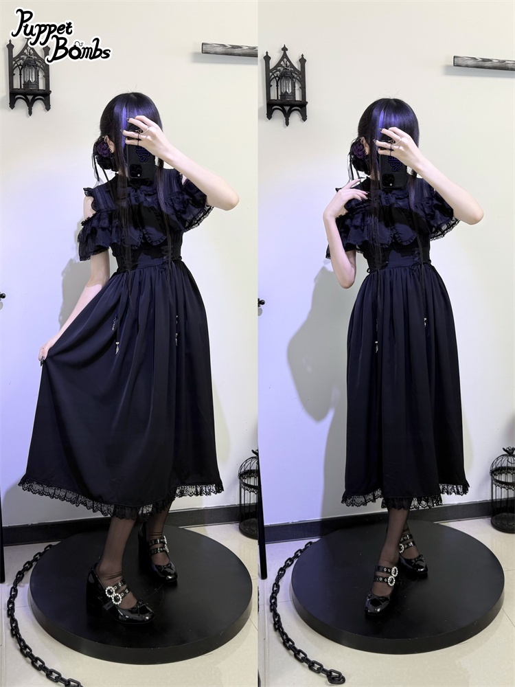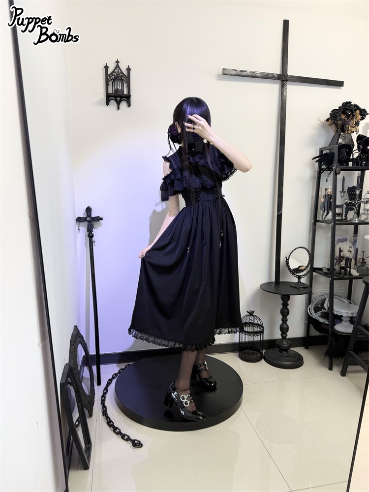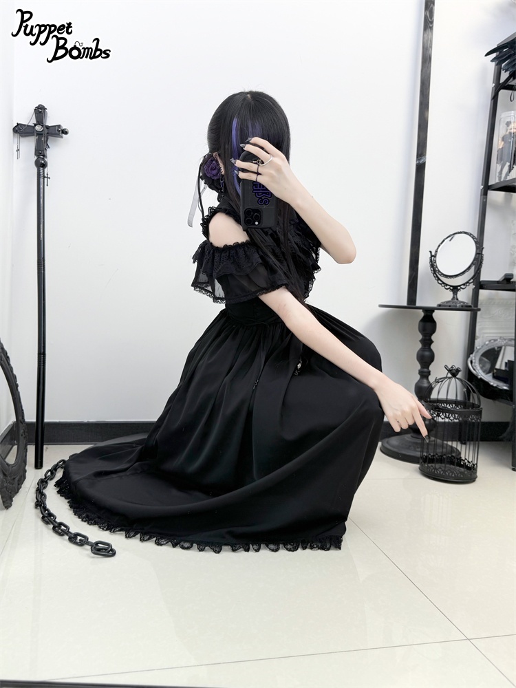 【Puppet Bombs】Q437 オープンショルダーロングワンピース [Q437]