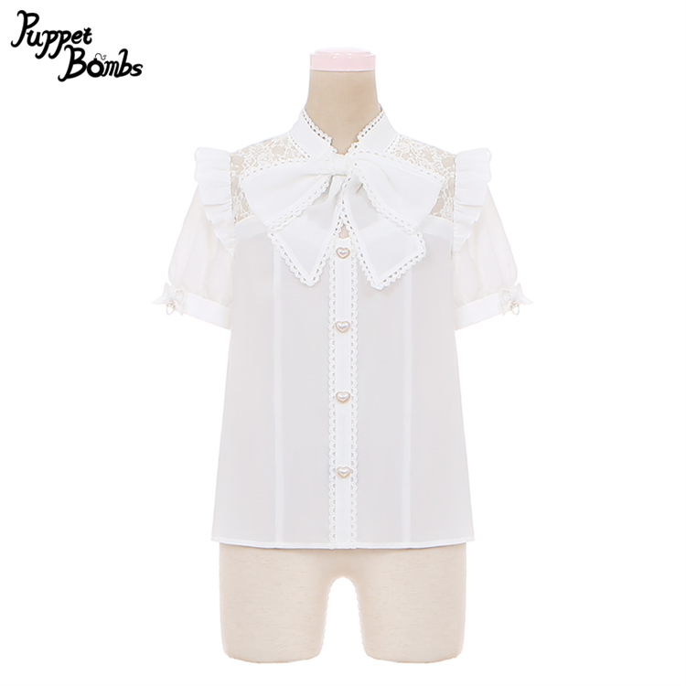 【Last one】【Puppet Bombs】Q153 レース切り替えリボンタイブラウス【30%OFF】