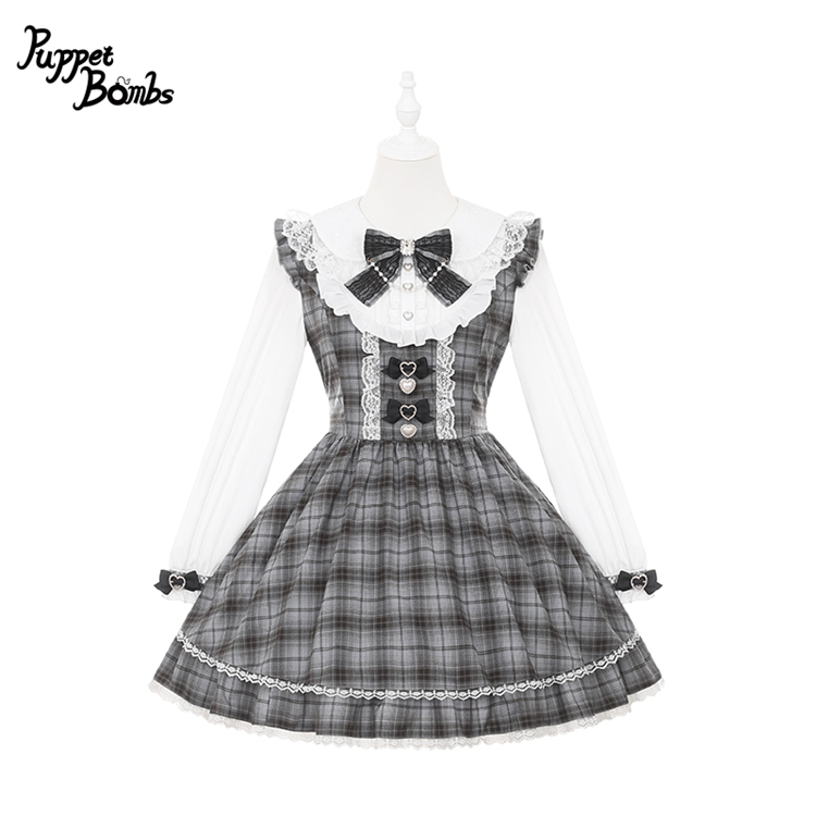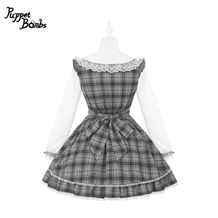 【送料無料】Q471 グレーチェックヨークワンピース《予約受付》 [Q471]