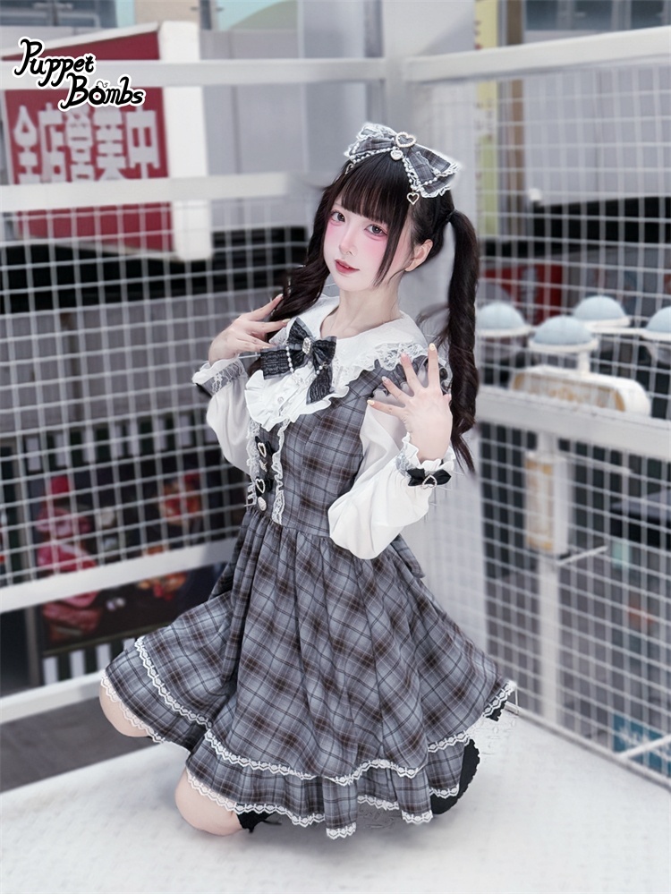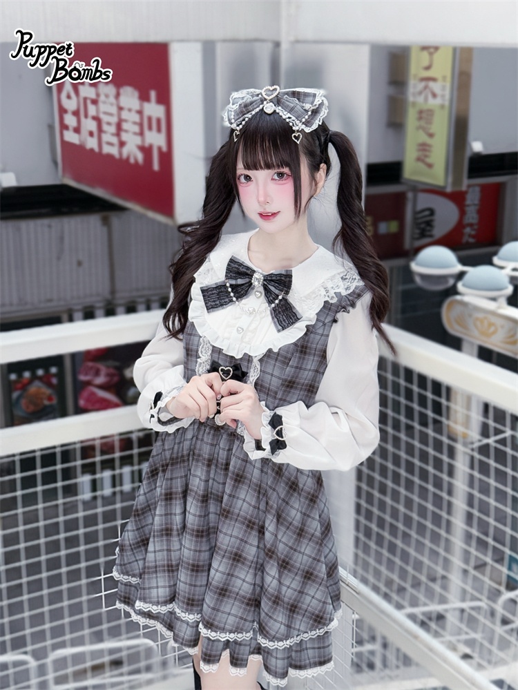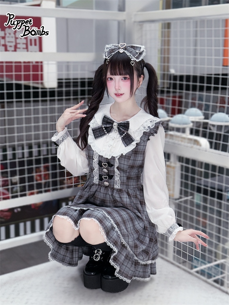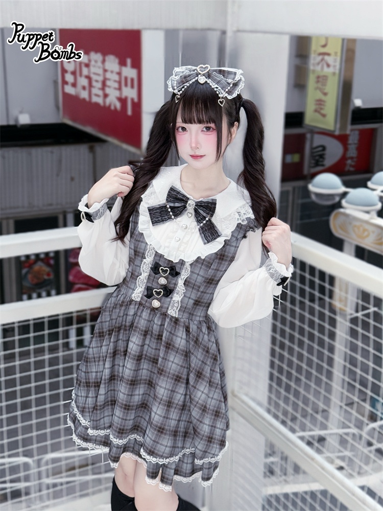 【送料無料】QS190 グレーチェックリボンカチューシャ《予約受付》【計5000円以上】