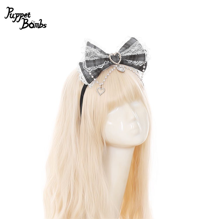 【送料無料】QS190 グレーチェックリボンカチューシャ《予約受付》【計5000円以上】 [QS190]