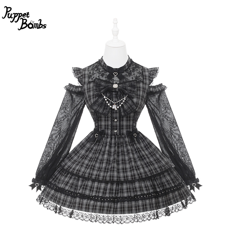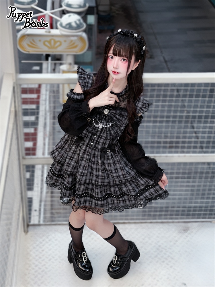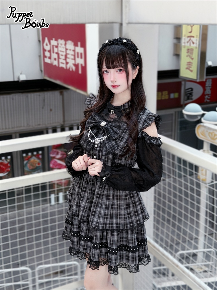 【送料無料】Q489 リボンオープンショルダーチェックワンピース《予約受付》 [Q489]
