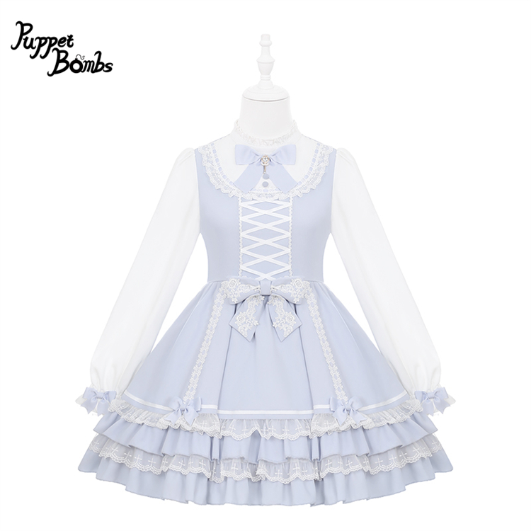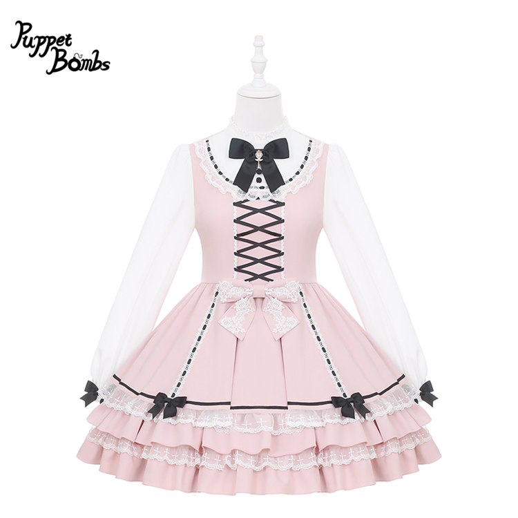 【送料無料】Q494はしごレース×リボンヨーク切り替えワンピース 《予約受付》 [Q494]