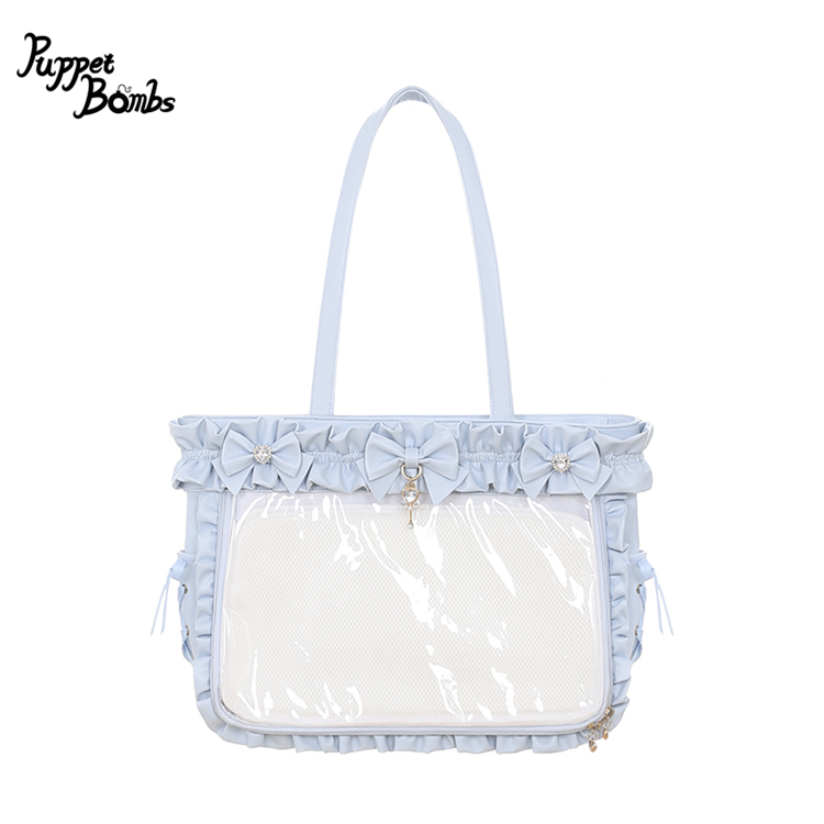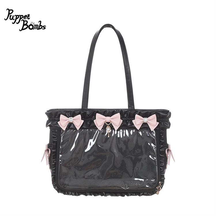 【送料無料】QP22 ハートビジュー付きリボン×フリルクリアカバー付きバッグ《予約受付》 [QP22]