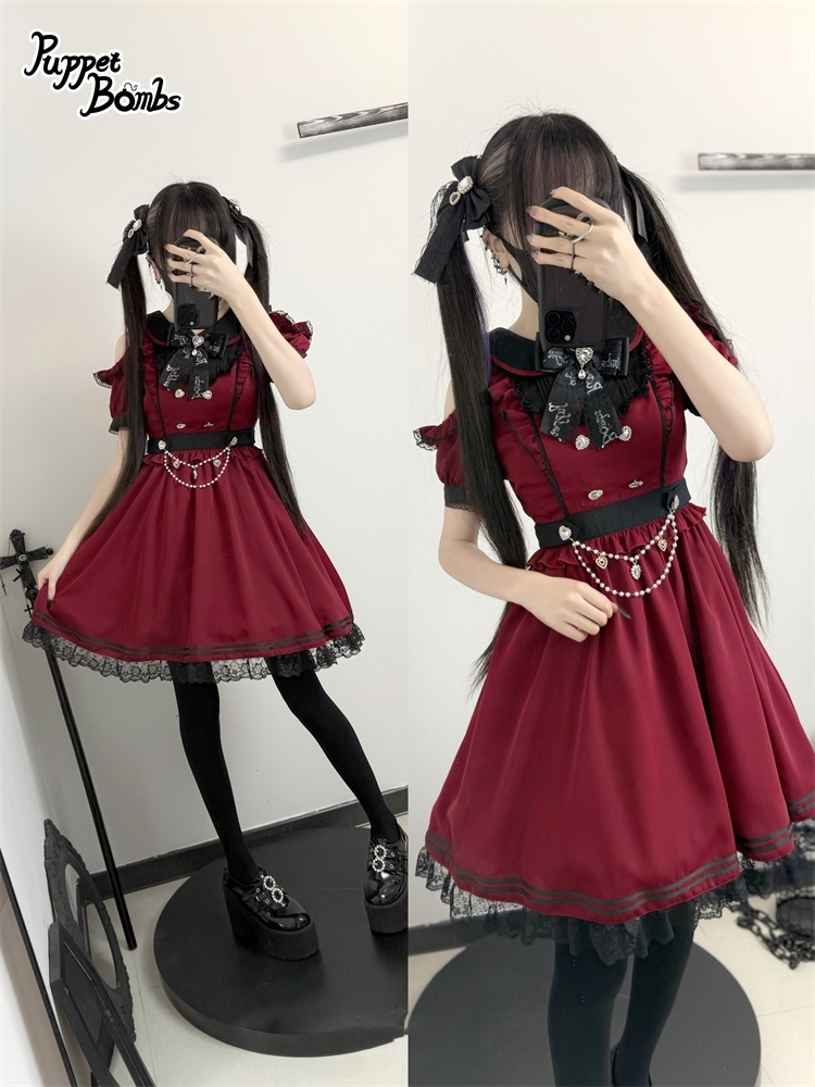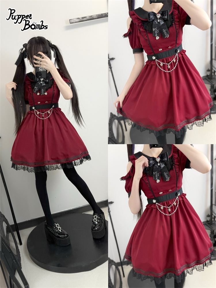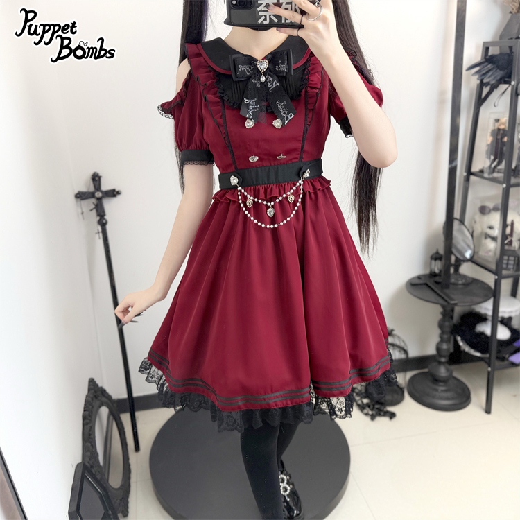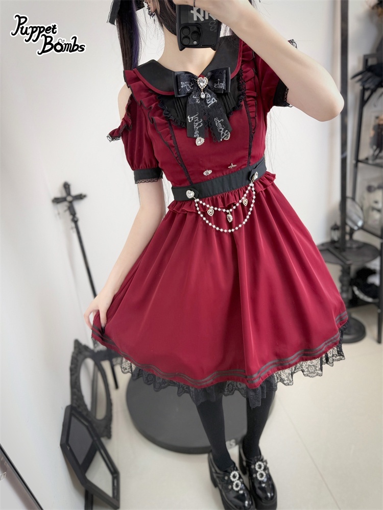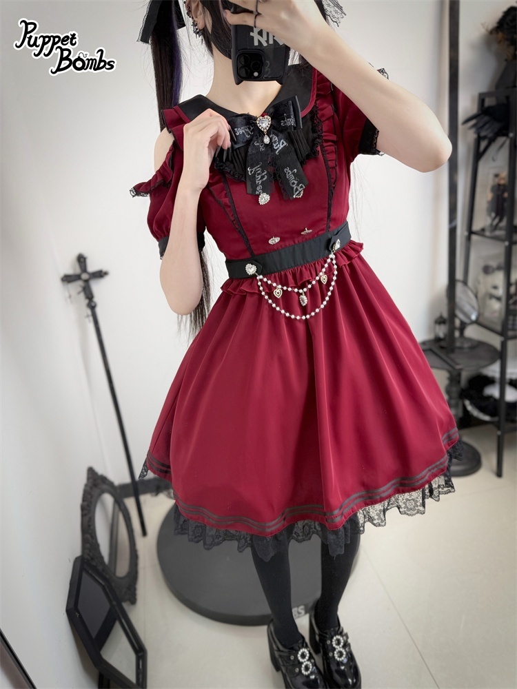 【Puppet Bombs】Q402 オフショルハートレイヤード風ワンピース [Q402]