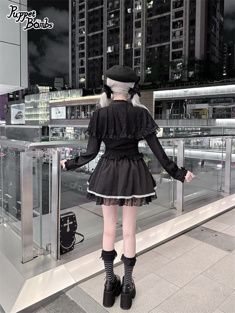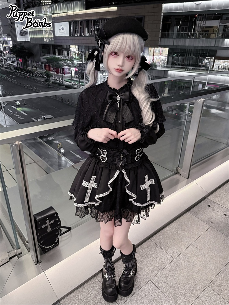 【Puppet Bombs】Q459レースクロスフロントカシュクールスカート