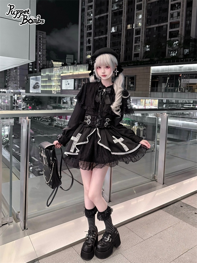 【Puppet Bombs】Q459レースクロスフロントカシュクールスカート [Q459]