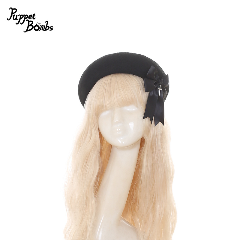 【Puppet Bombs】QS191 クロスチャームリボン付きベレー帽