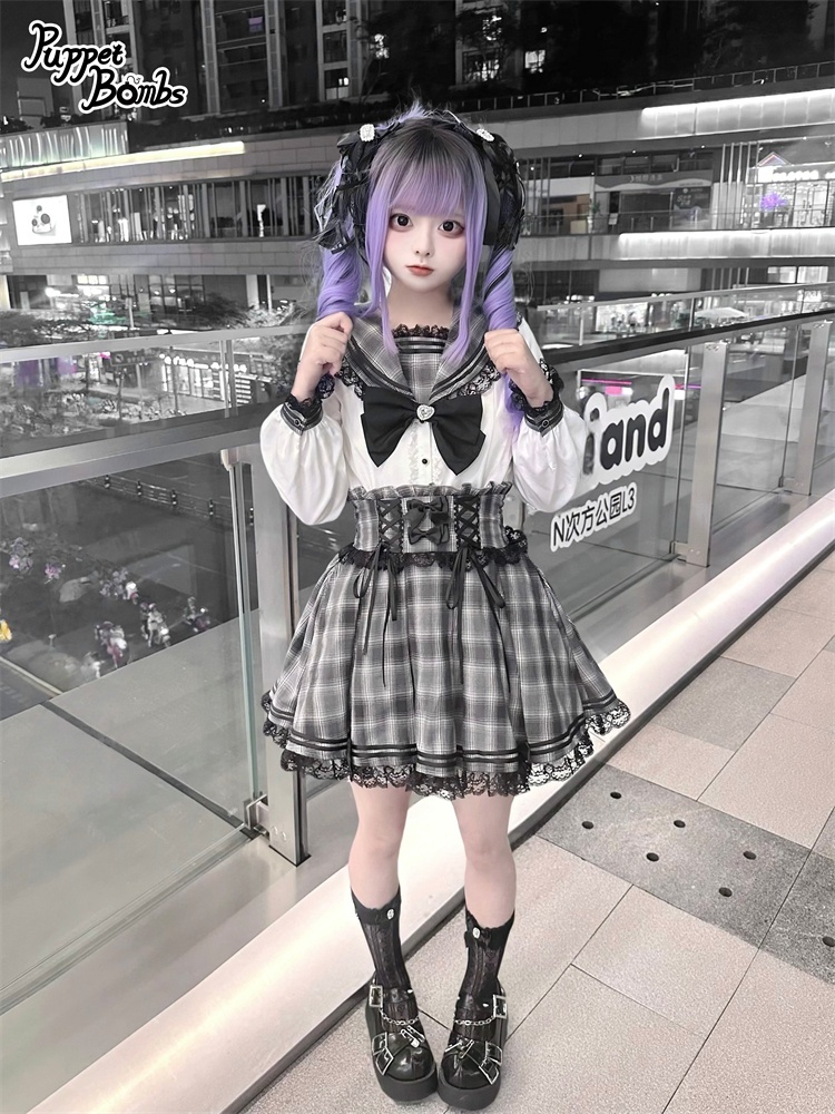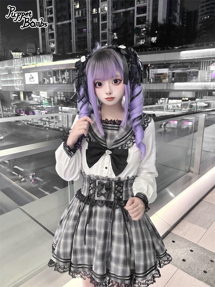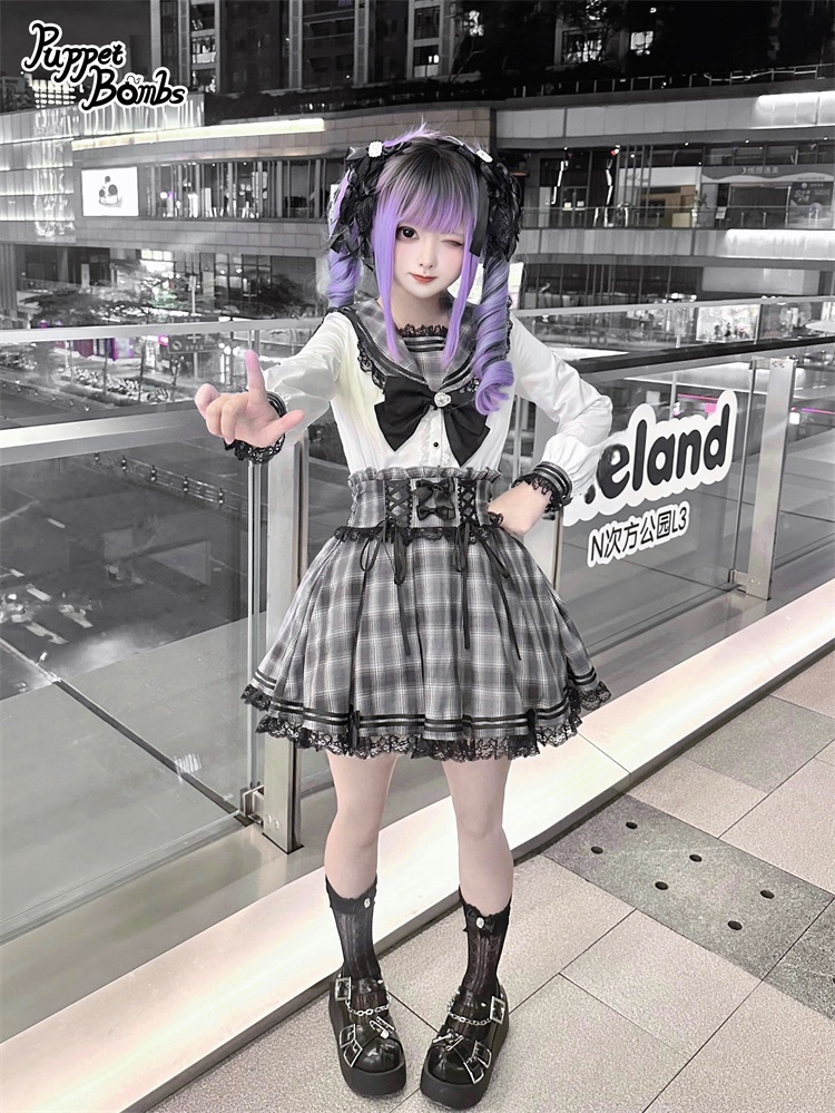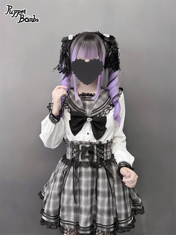 【Puppet Bombs】Q450チェックフリルセーラーブラウス