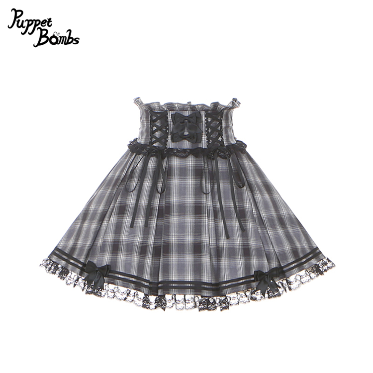 【Puppet Bombs】Q451ボックスプリーツチェックスカート [Q451]