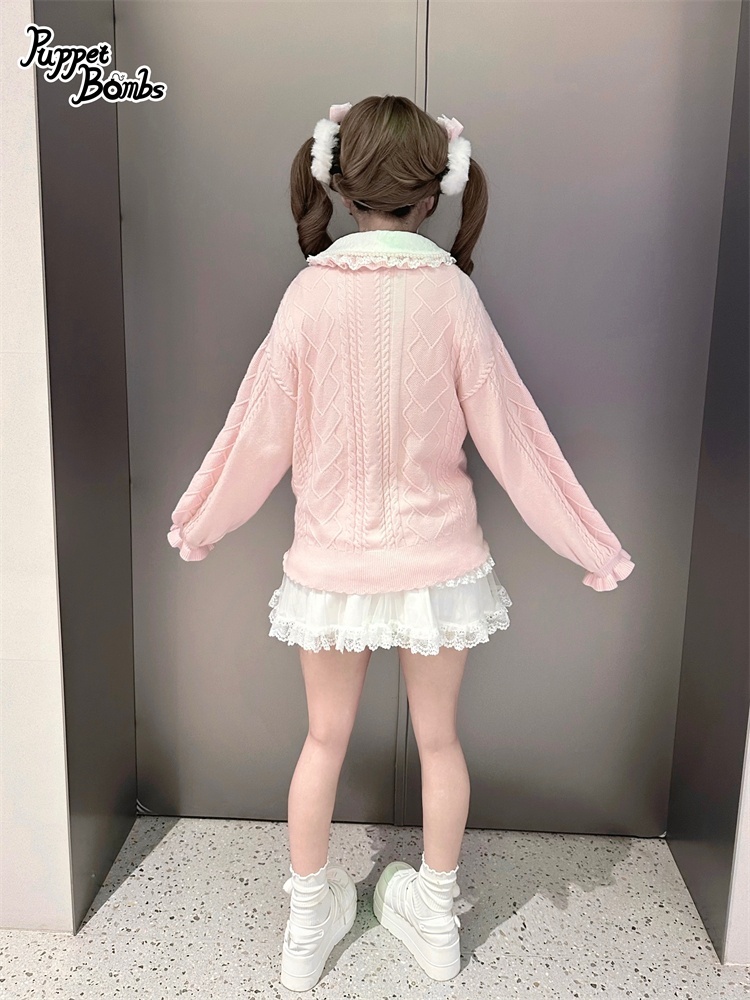 【Puppet Bombs】Q80 Vネックハートボタンカーディガン