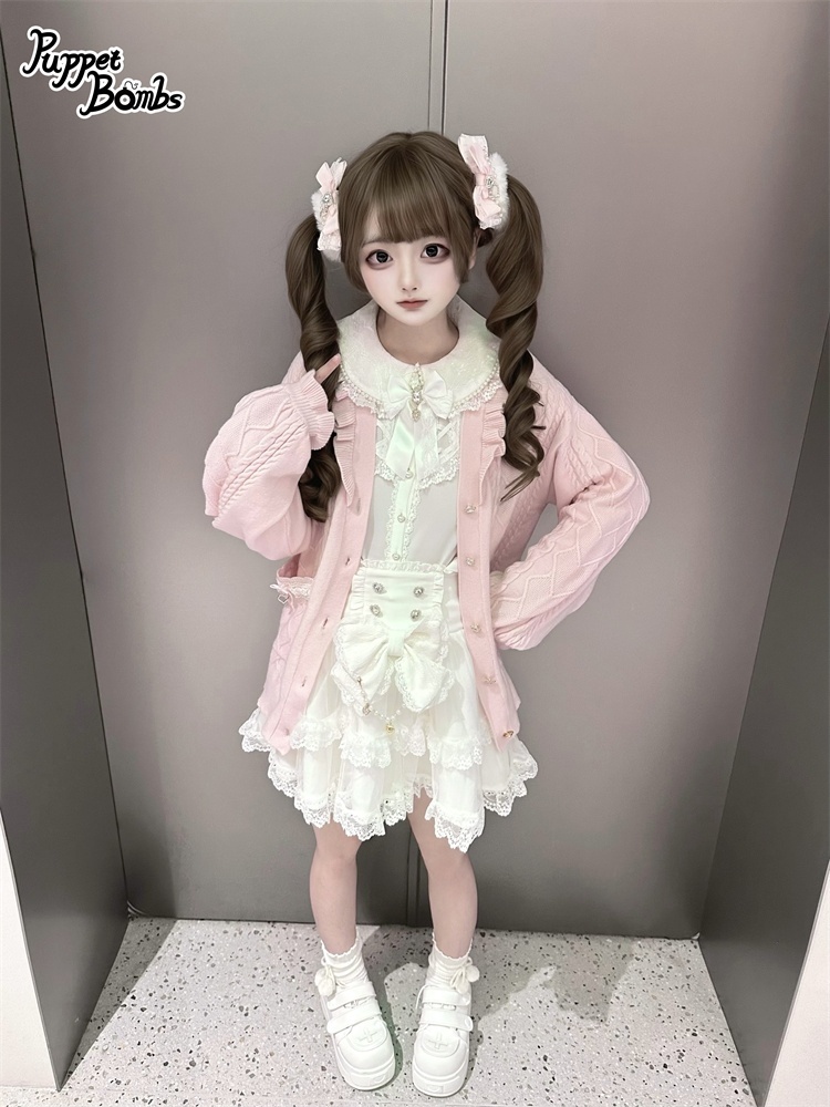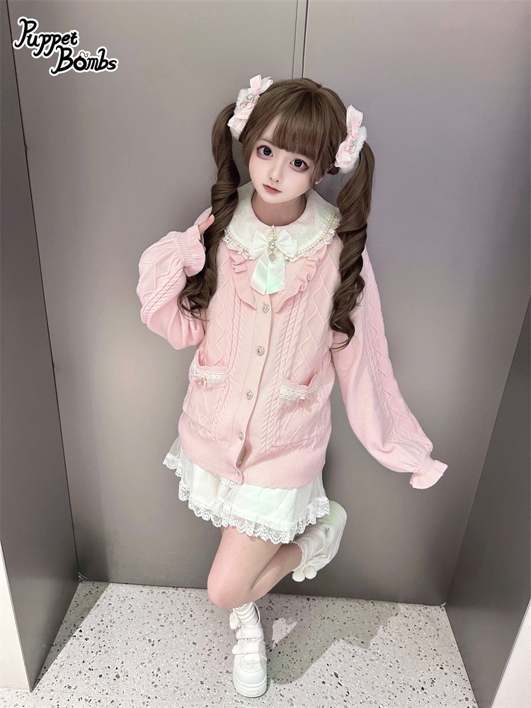 【Puppet Bombs】Q80 Vネックハートボタンカーディガン [Q80]