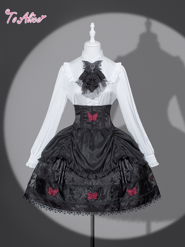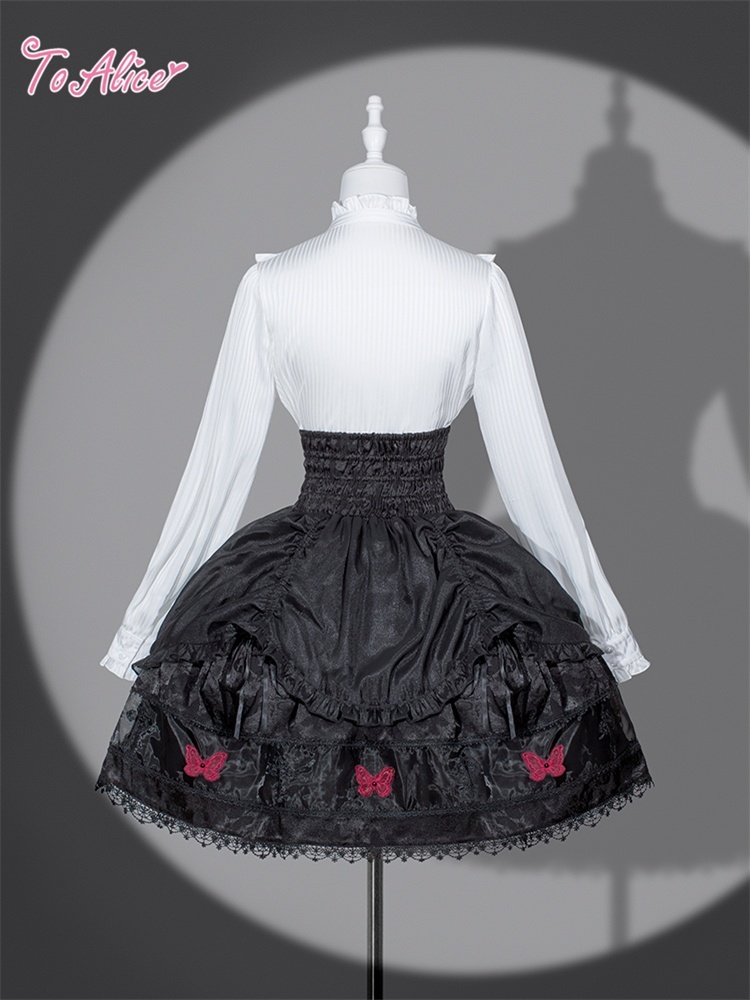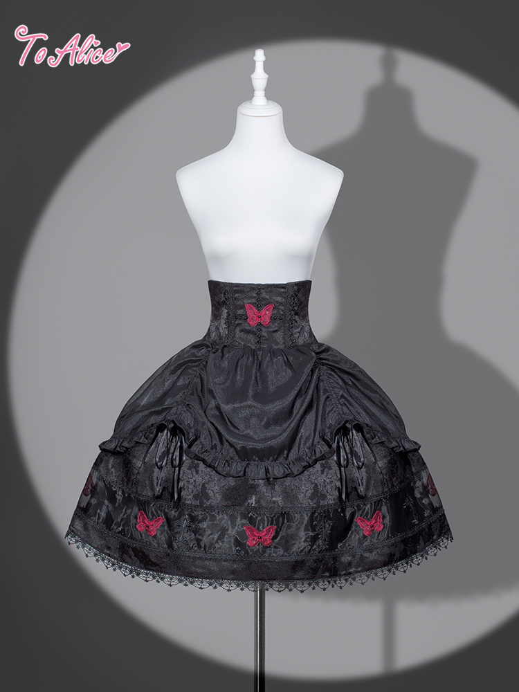 赤い蝶が散りばめられたハイウエストスカート。