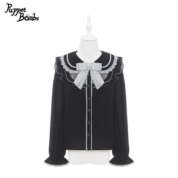 【PuppetBombs】Q470 レース切り替えパフ長袖ブラウス [Q470]