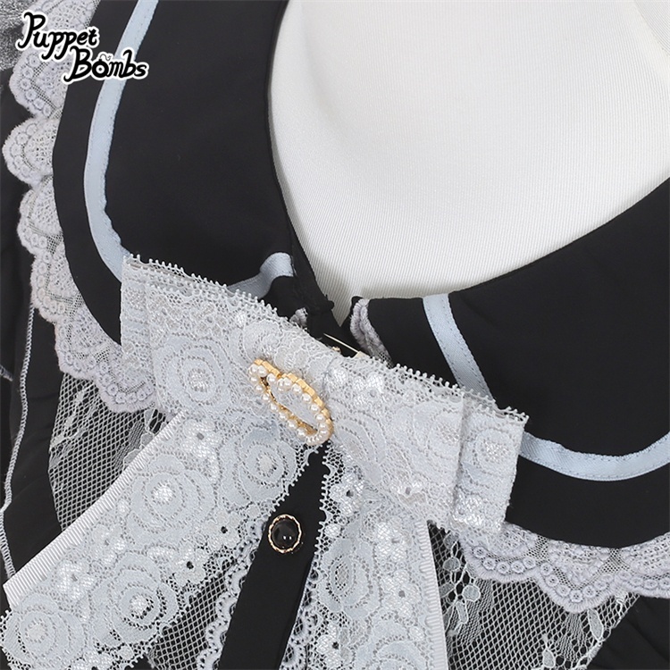 【PuppetBombs】Q470 レース切り替えパフ長袖ブラウス