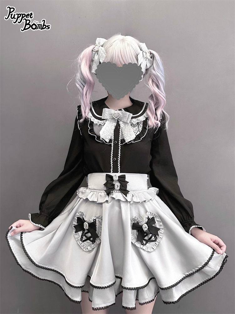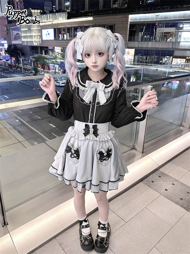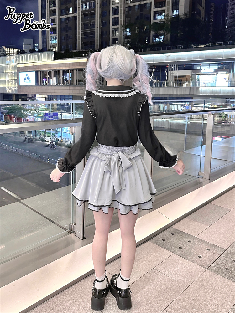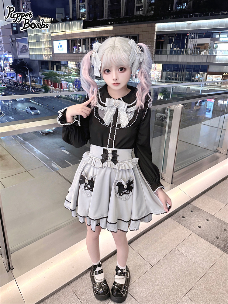 【Puppet Bombs】Q470 レース切り替えパフ長袖ブラウス [Q470]