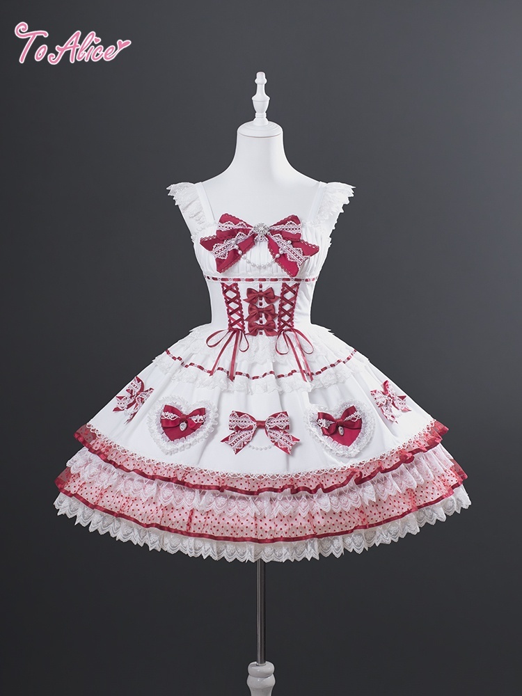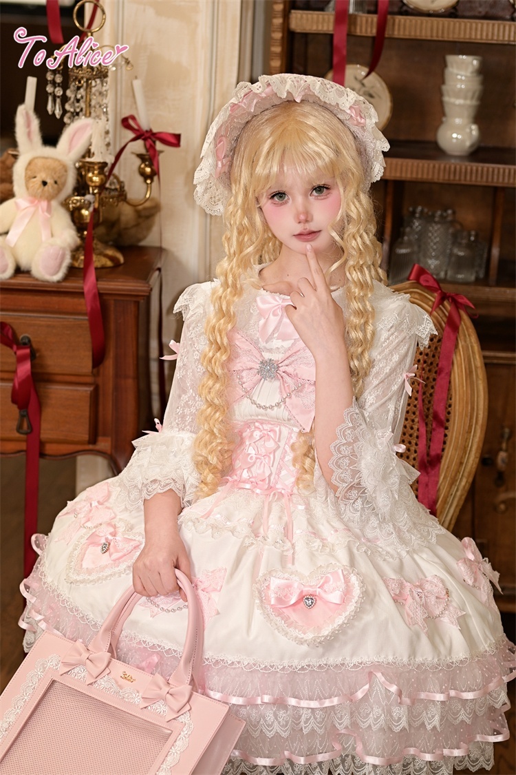 ハートとリボンの装飾がかわいい甘めデザインのドレス。