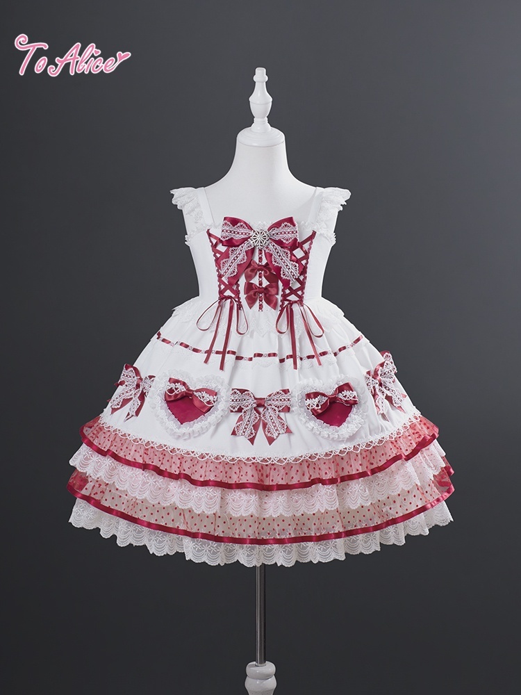 ハートとリボンの装飾がかわいい甘めデザインのドレス。