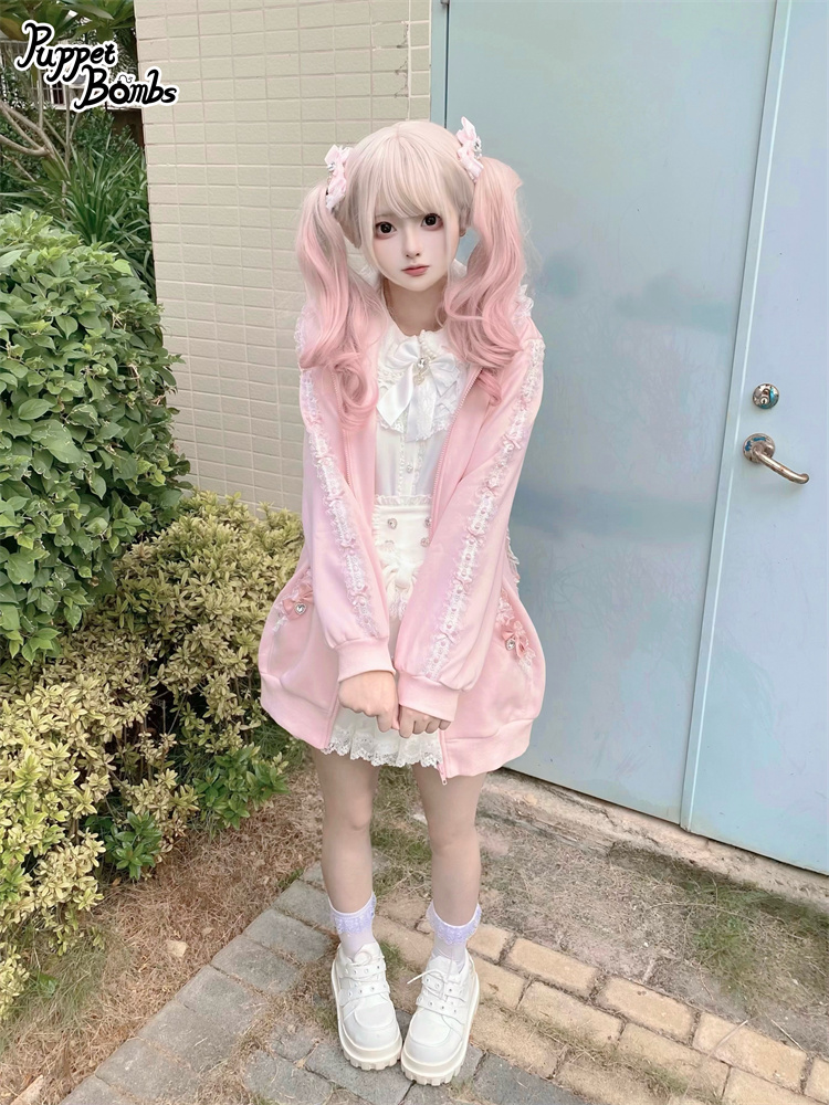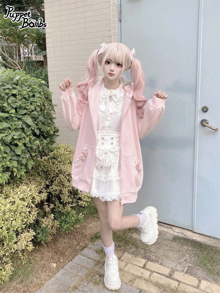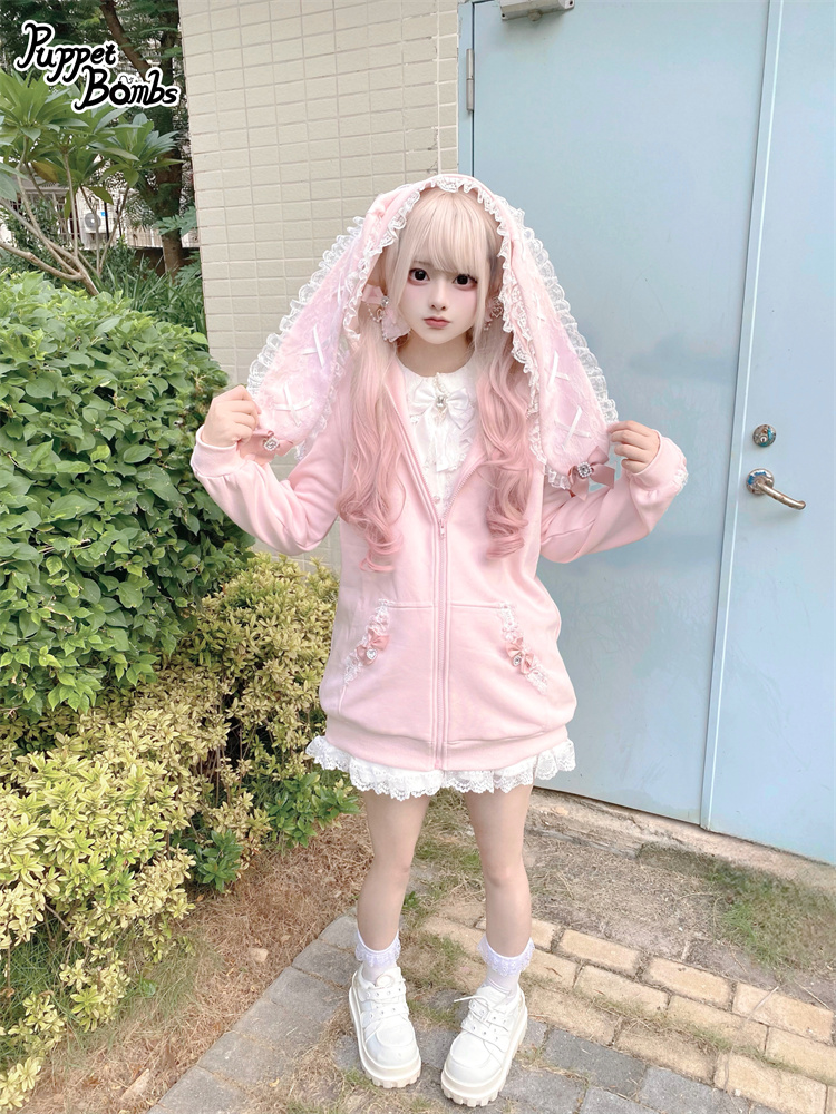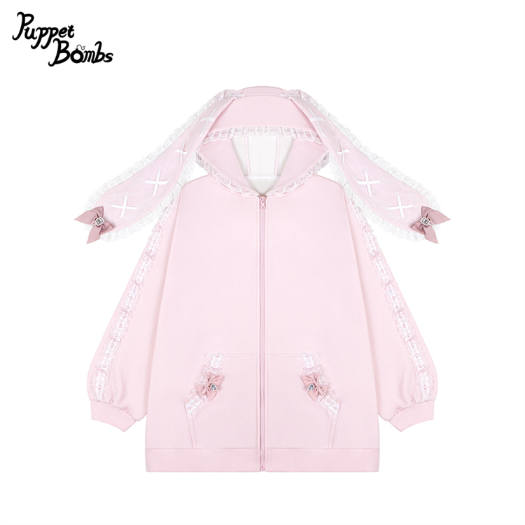 【Puppet Bombs】Q468 リボンデコレーションフリルうさ耳パーカー [Q468]