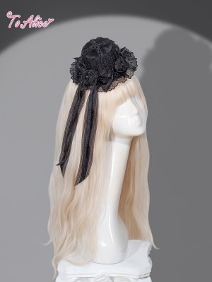 胸元に十字架の刺繡が入った長袖のレーストップス。