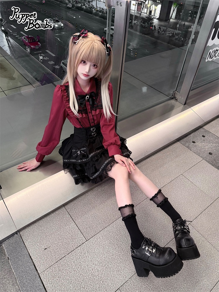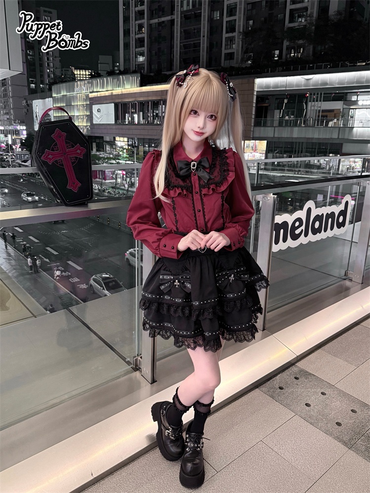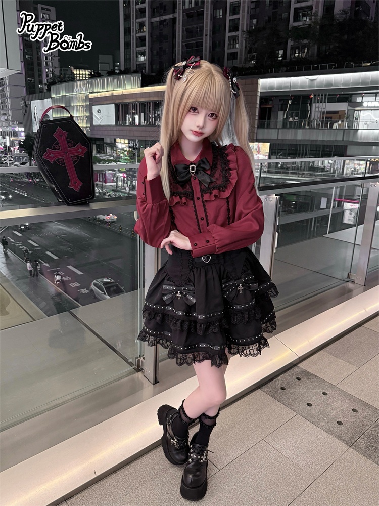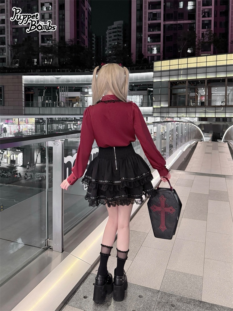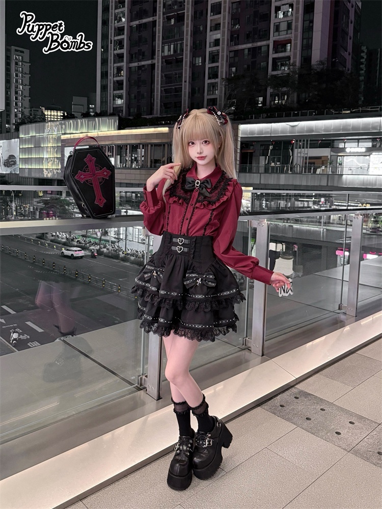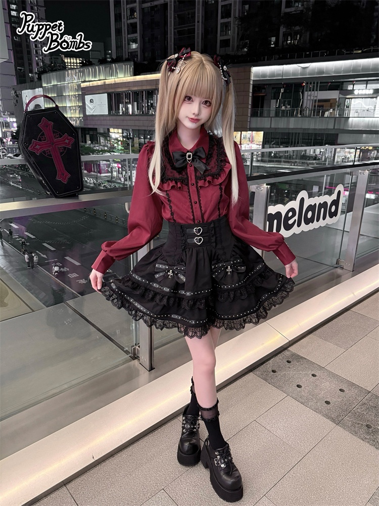 【Puppet Bombs】Q497 ロックリボンティアードスカート [Q497]