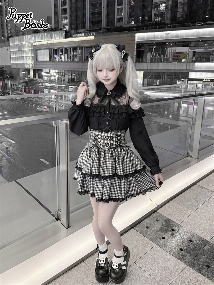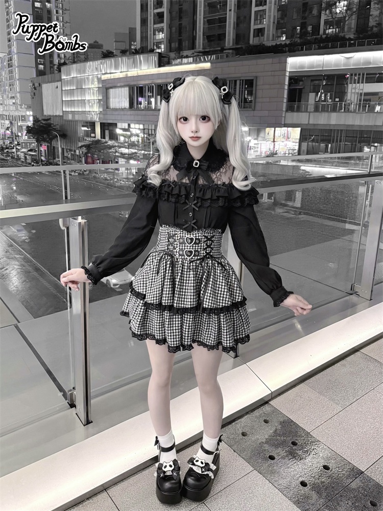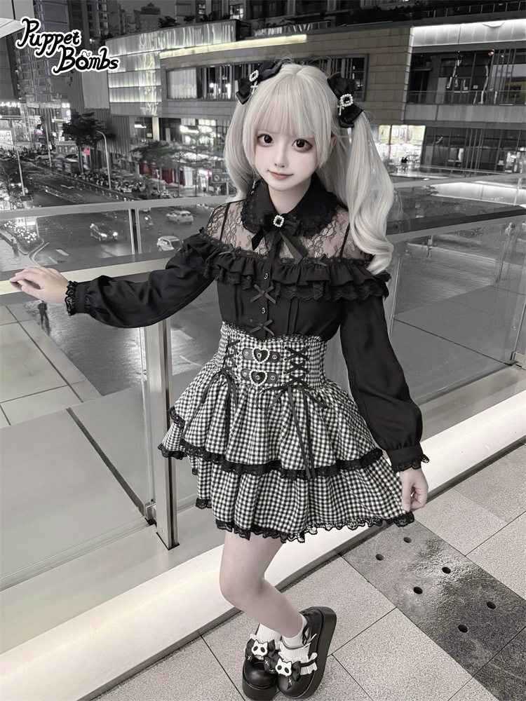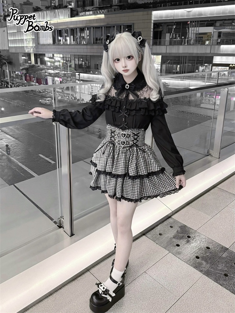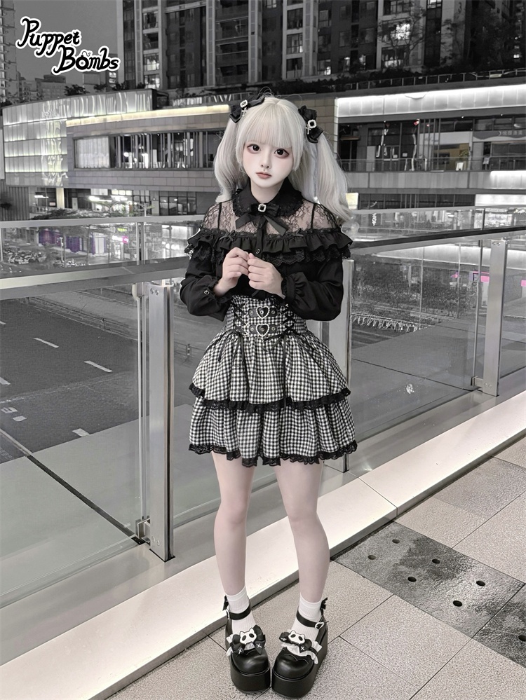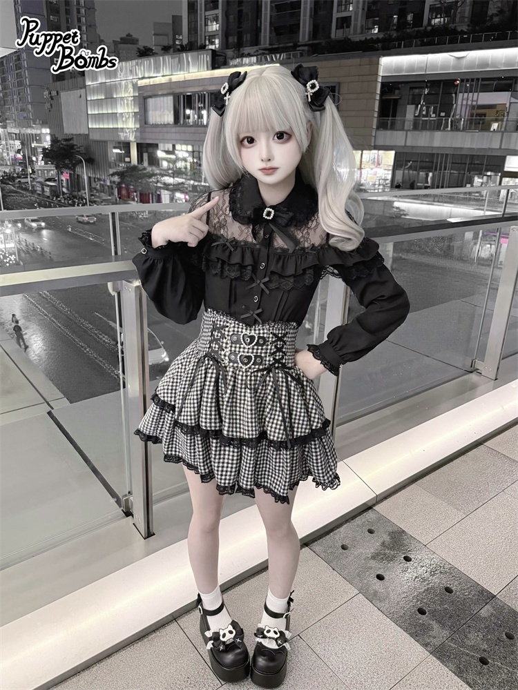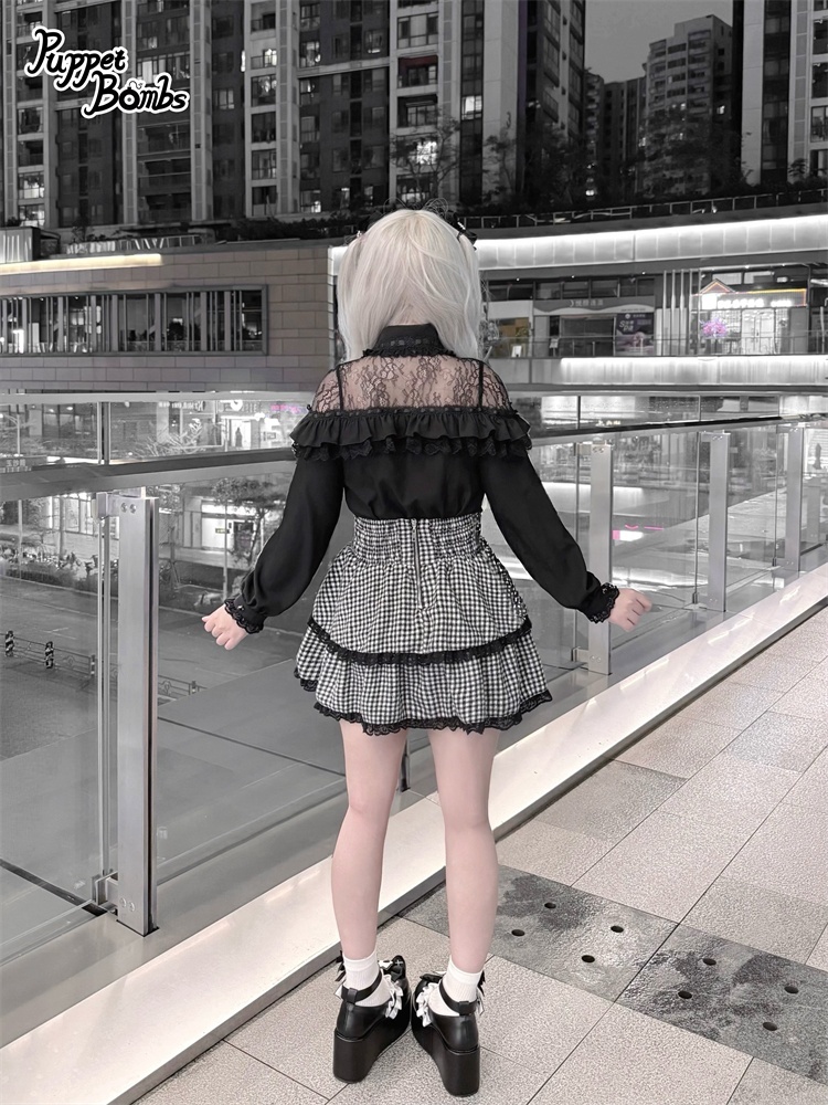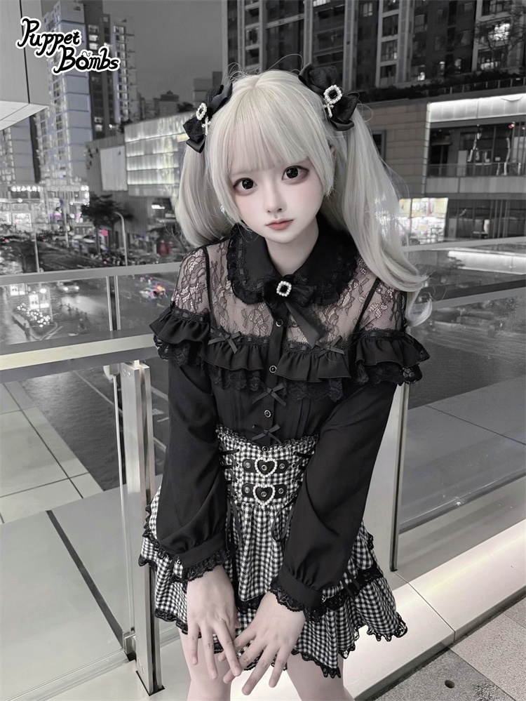 デコルテ部分のレースとフリルがかわいいブラウス。