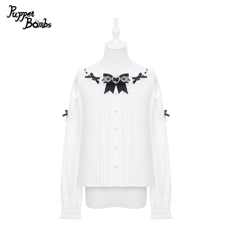 【Puppet Bombs】Q490 ショルダーレースリボンブラウス [Q490]