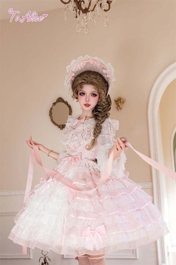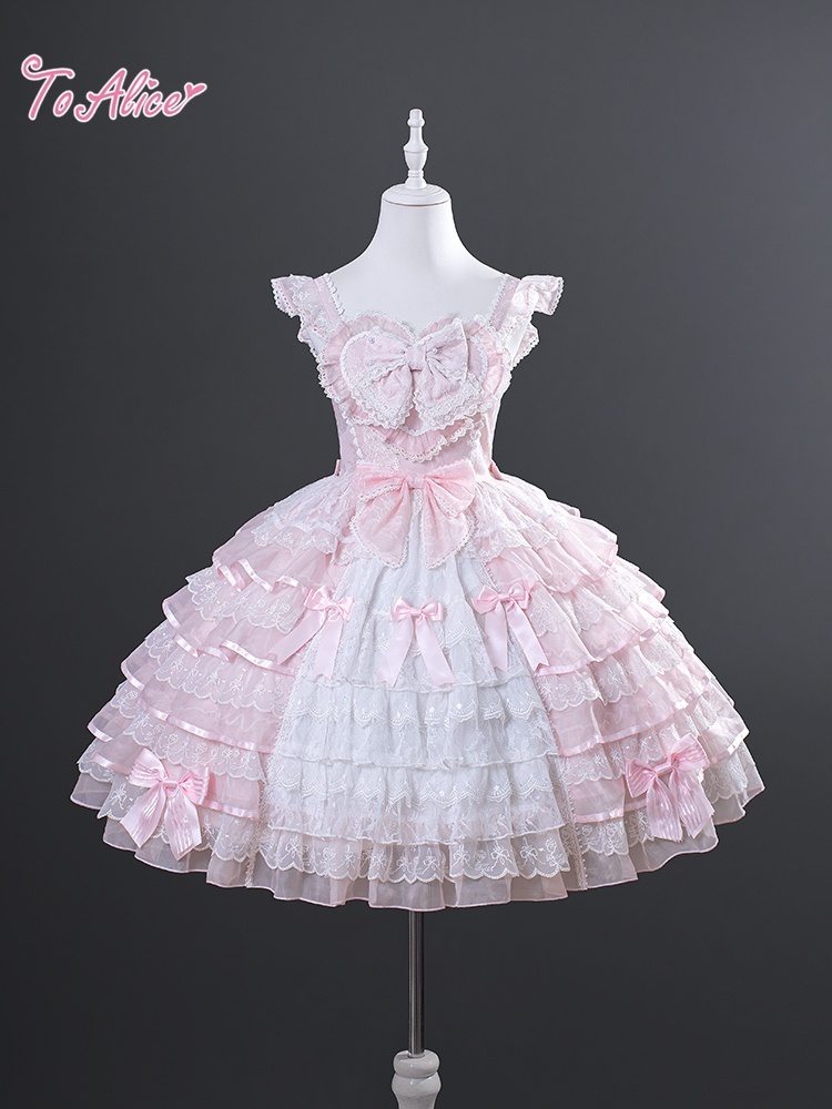 胸元の大きなリボン付きハートがかわいいティアードドレス。