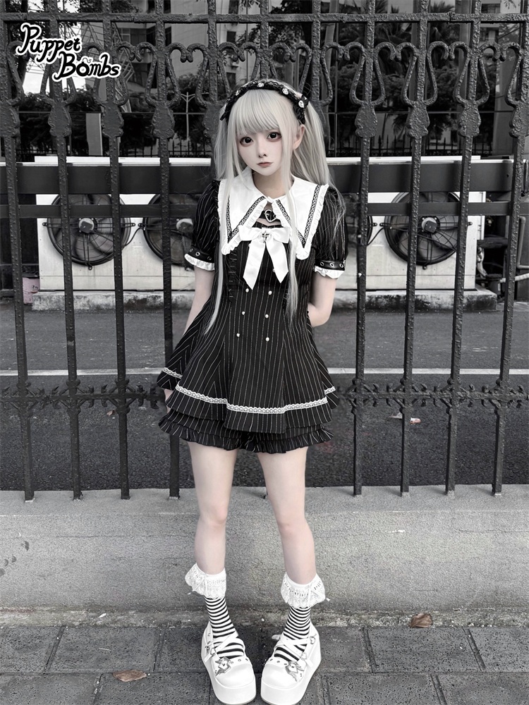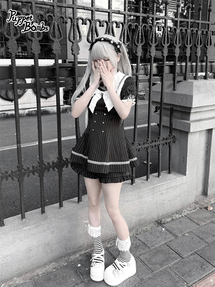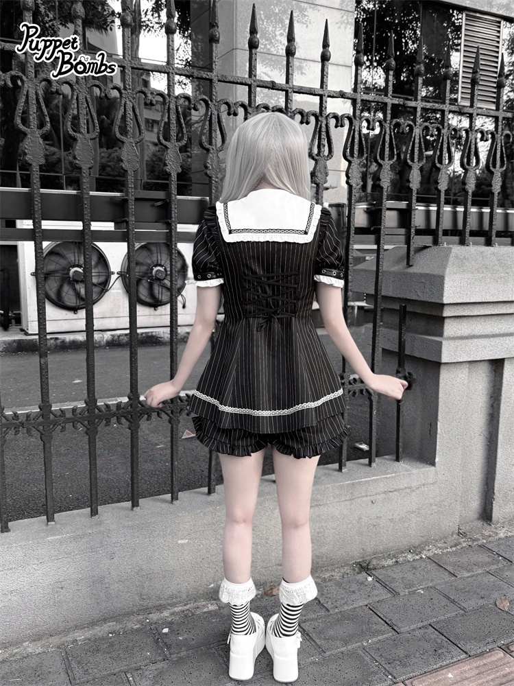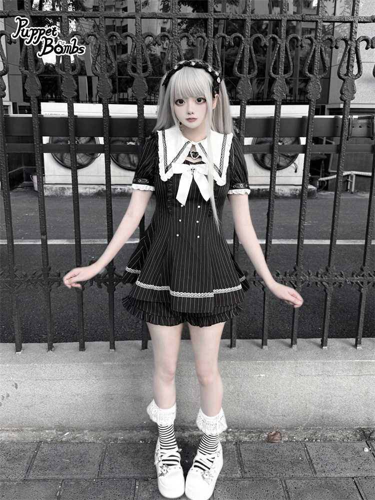 【送料無料】Q454 ピンストライプ半袖セットアップ《予約受付》 [Q454]