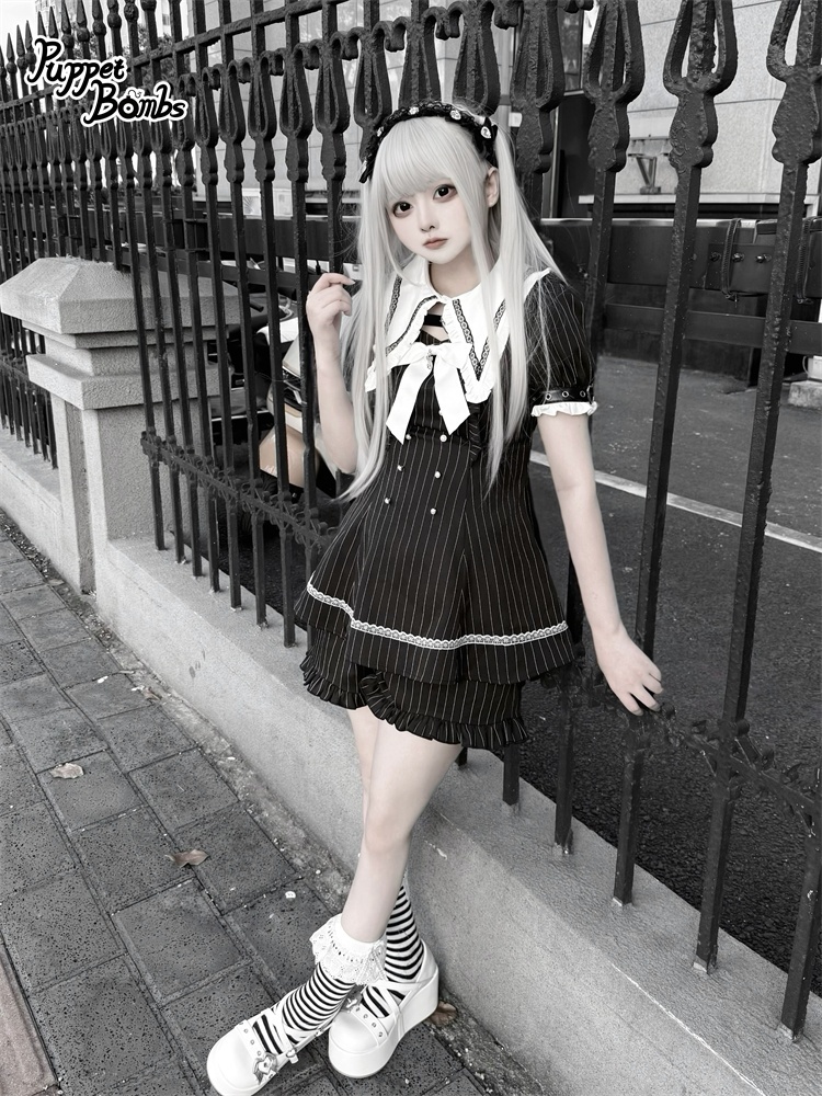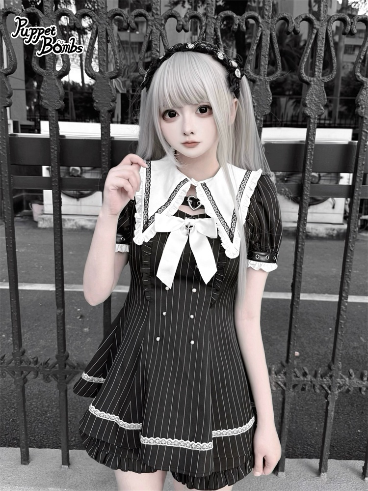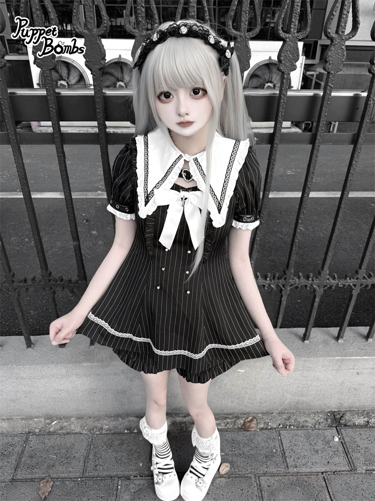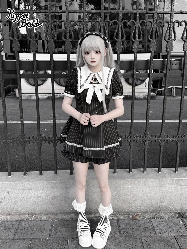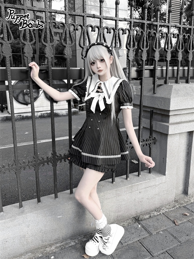 【送料無料】Q454 ピンストライプ半袖セットアップ《予約受付》 [Q454]