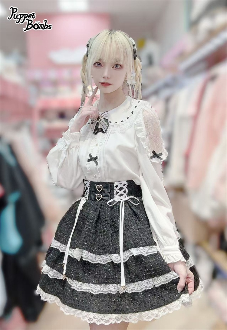 【PuppetBombs】Q480 ショルダーレース切り替えリボンブラウス [Q480]