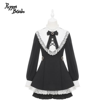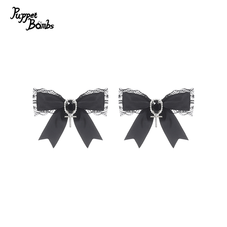 【Puppet Bombs】QS203 ブラックビジュー付きリボンヘアクリップセット [QS203]