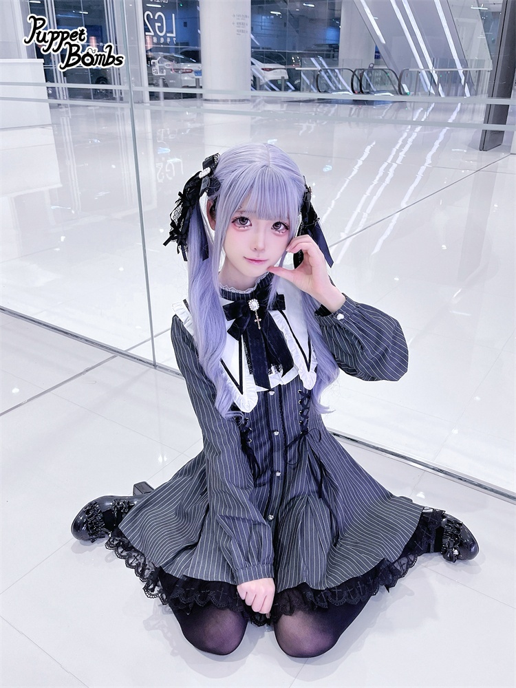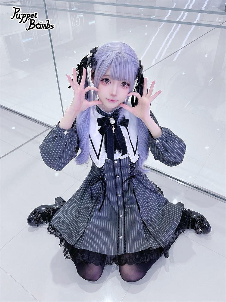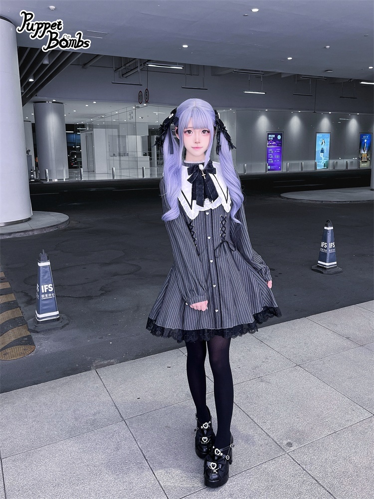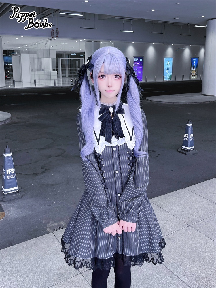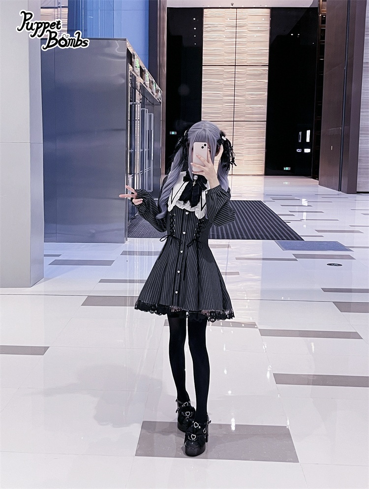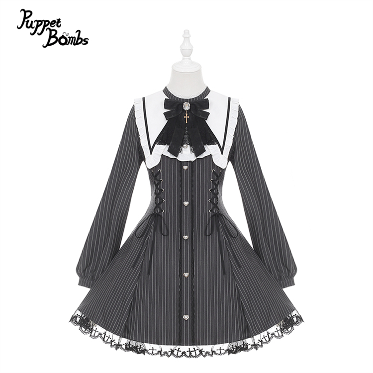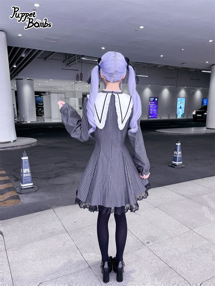 【Puppet Bombs】Q510 変型襟ストライプワンピース [Q510]