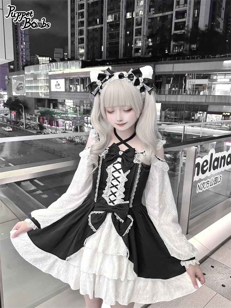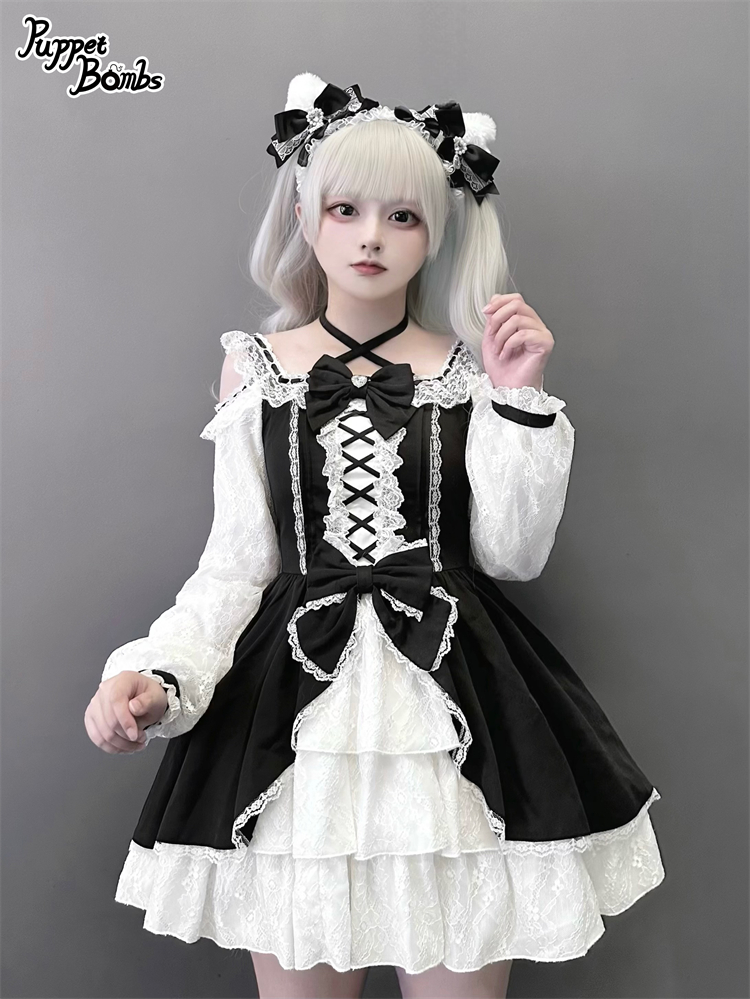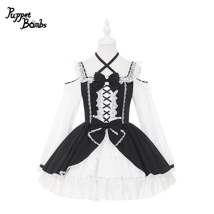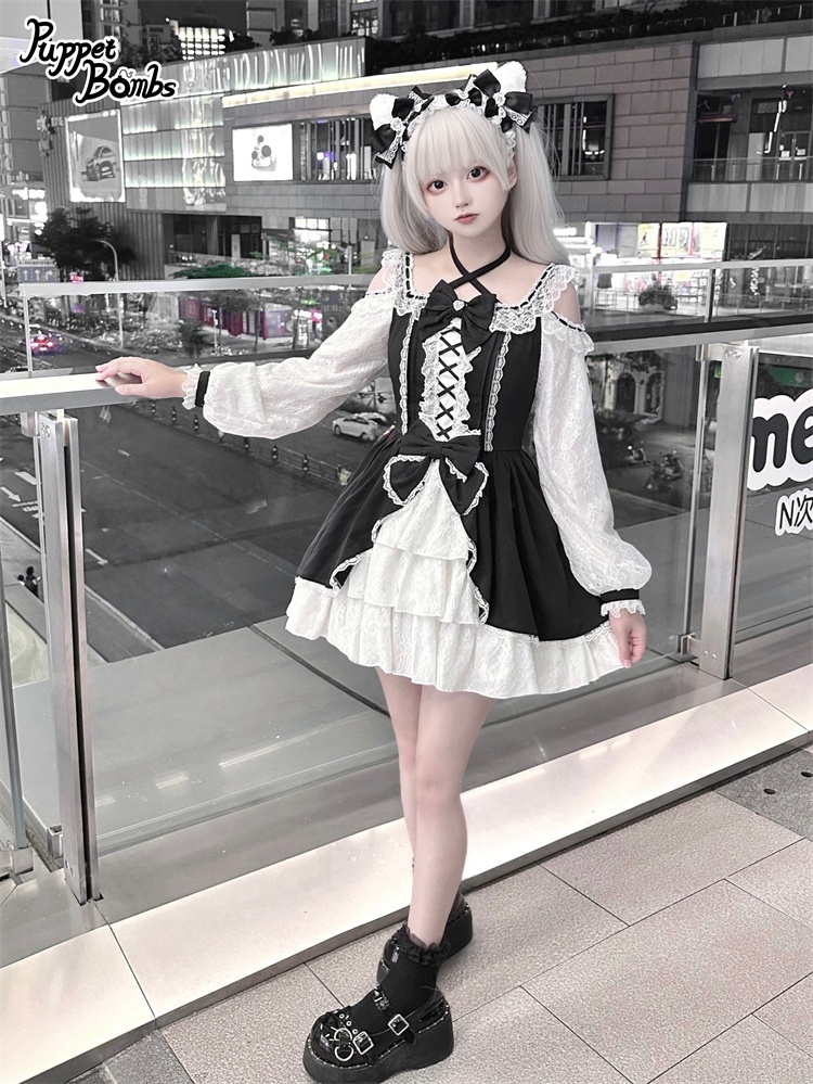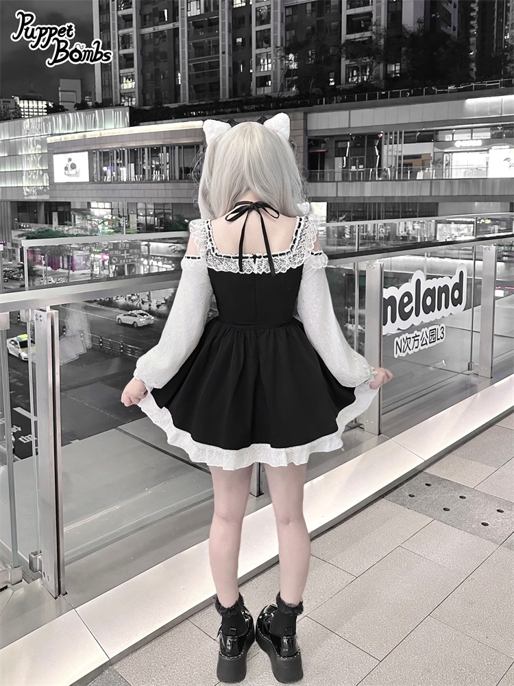 【Puppet Bombs】Q444 オープンショルダーレースワンピース [Q444]