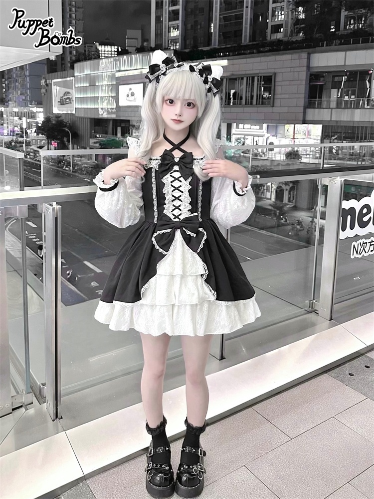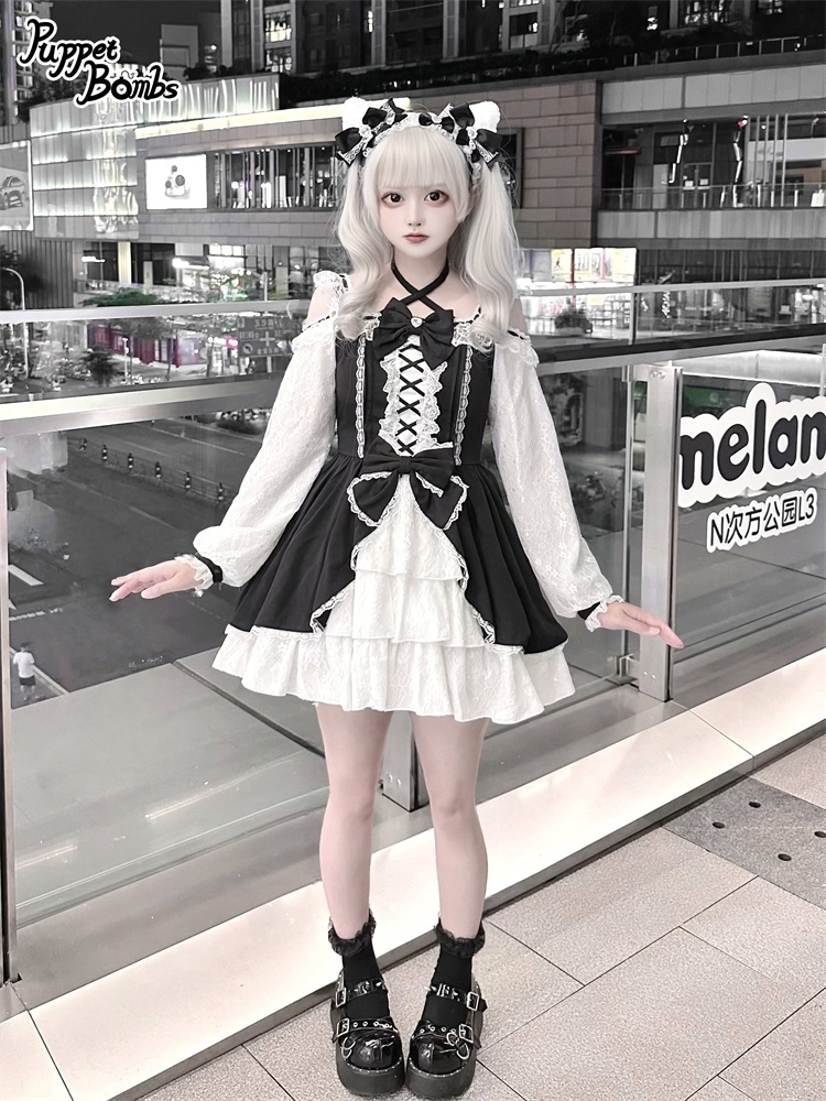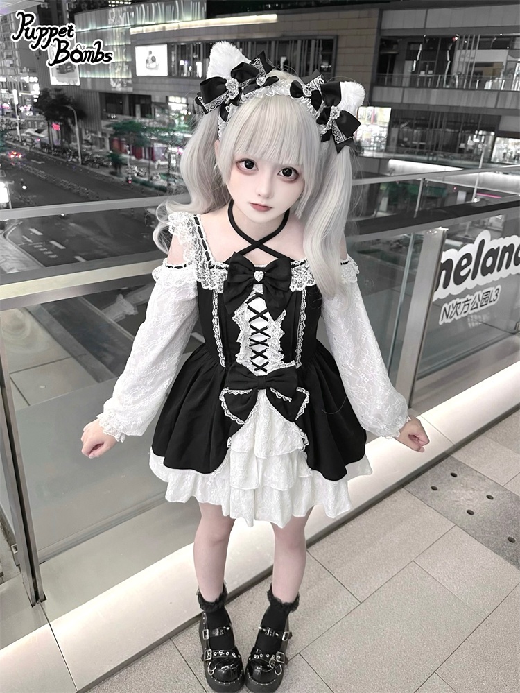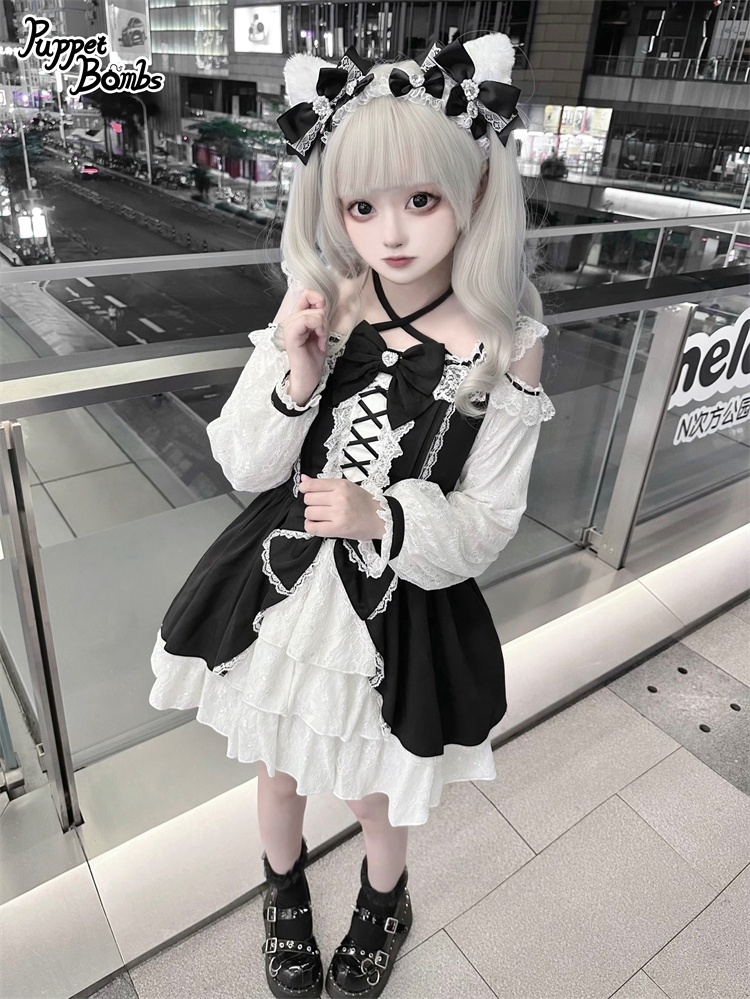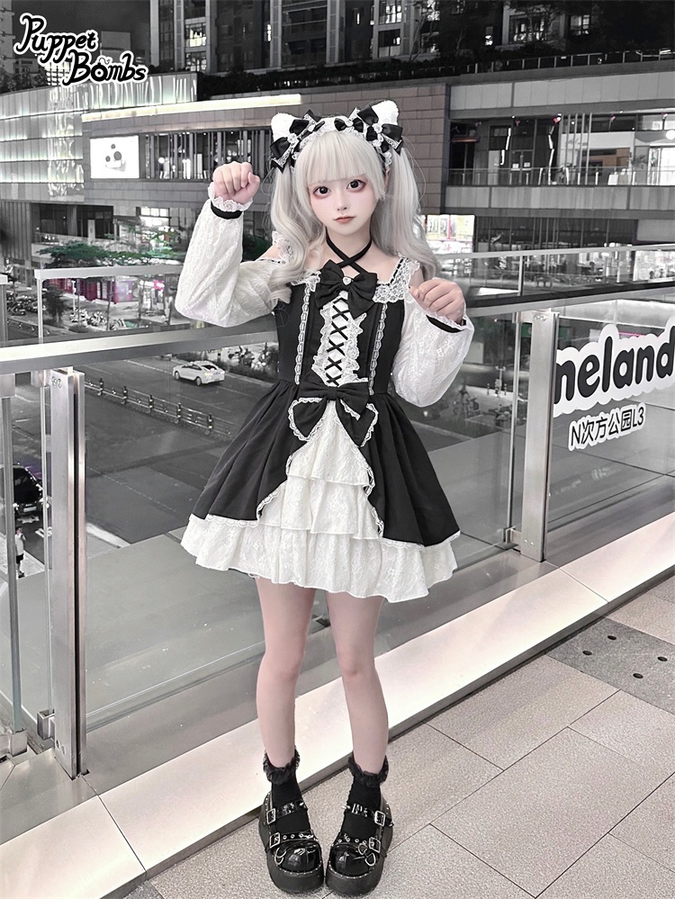【Puppet Bombs】Q444 オープンショルダーレースワンピース [Q444]