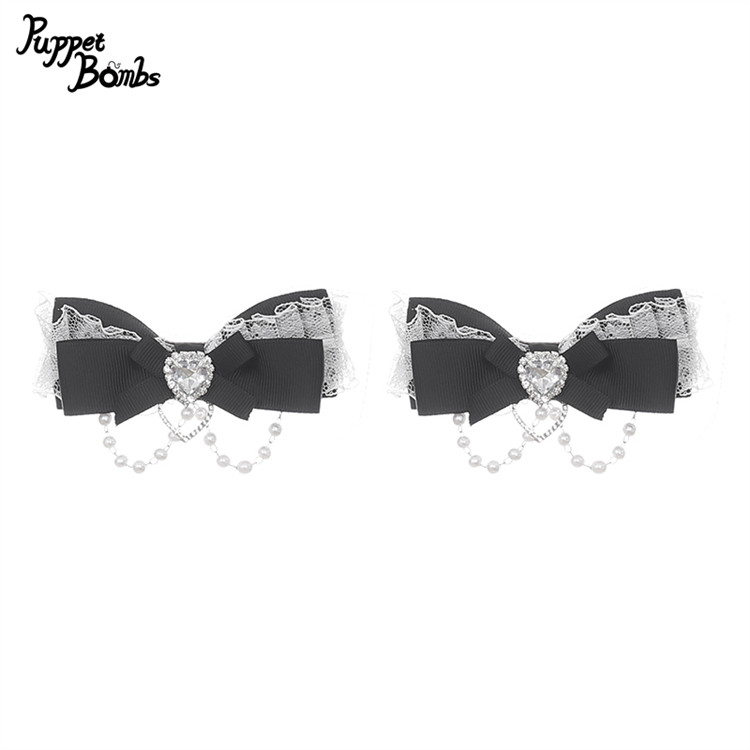 【PuppetBombs】QS198ハートビジューリボンヘアクリップセット [QS198]