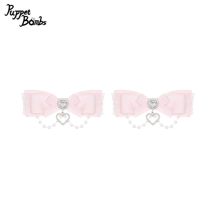 【PuppetBombs】QS198ハートビジューリボンヘアクリップセット